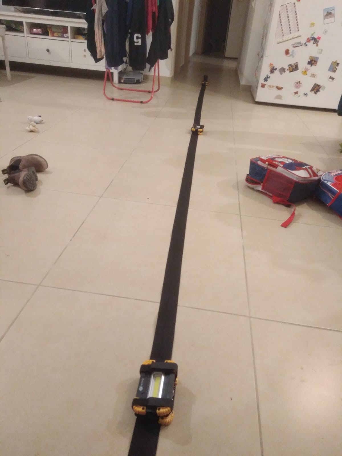 לכל פרוז'קטור קטן, תפרתי חבקים שמושחלים על רצועה של קצת יותר מ5 מטר. כעת יש לי גרילנדה עם שלושה מקורות אור, הניתנים להזזה על הרצועה כראות עיני (או קרובים זה לזה, או רחוקים, כתלות בגודל השטח, והעוצמה הרצויה). כמובן שלא חייבים להדליק את כולם, והכל נתיק ופריק ומודולרי. ניתן להשתמש בהם לעבודה על הרכב, לקחת אחד לשירותים ולכל שימוש העולה על הדעת. הניתוק מהרצועה הוא פשוט פתיחת שני סקוצ'ים.