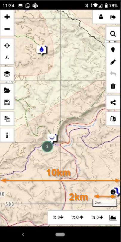 רוחב המסך בצילום המסך ששלחת הוא 10 ק"מ.