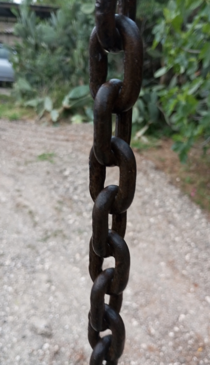 עוד משהו שרציתי לשפר מזמן אלה שרשראות הריתום, שבמקור היה כבלים עם שאקלים לא מזוהים. את השרשרת החלודה טבלתי בקוקה קולה, וזאת התוצאה, החלודה נעלמה כליל. חבל שלא צילמתי לפני הקולה.. בסוף גם צבעתי בלבן, שיהיה.