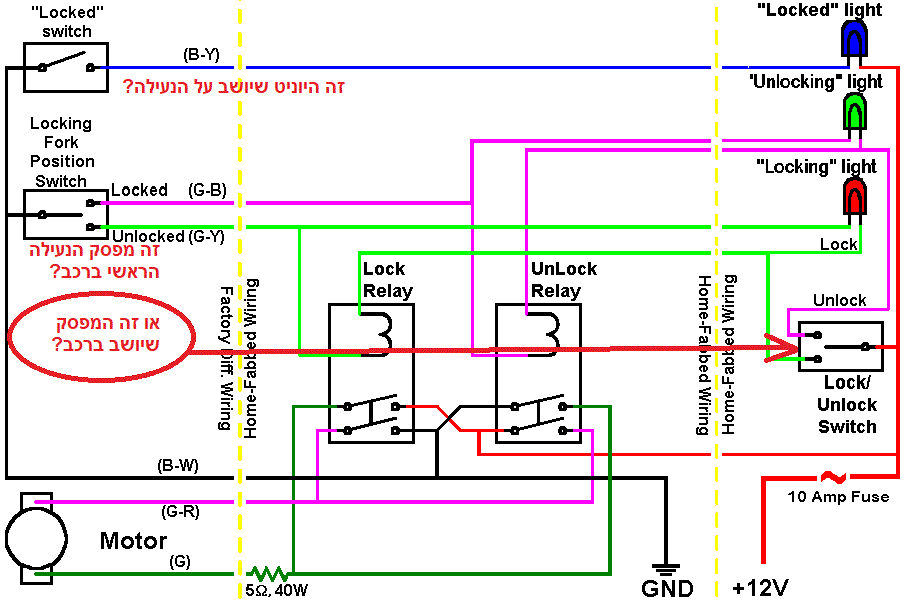 יכול להיות מעניין לקחת את המעגל ממסרים של הנעילה שיואב היה עושה בזמנו ואיתי עושה היום, למעשה שניים כאלה - ולבנות במקום הבקר שני מעגלי שילוב בלתי תלויים. אחד לADD ואחד לנעילה. זה יאפשר לנתק או לשלב הנעה קדמית בLOW ולנעול דיפ' אחורי ב4H או אפילו ב 2H.