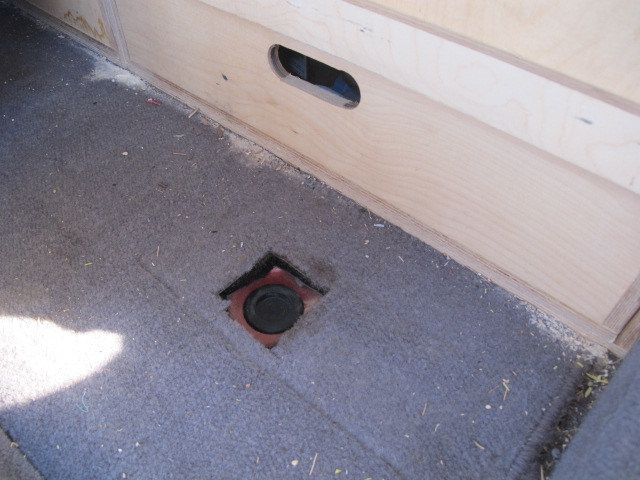 אפשר לראות בתמונה את החיתוך שביצעתי בריפוד בכדי לחשוף את החור המקורי ברצפת הרכב. מסתבר שטויוטה כבר הקדימו אותי ועשו עבודת הכנה.