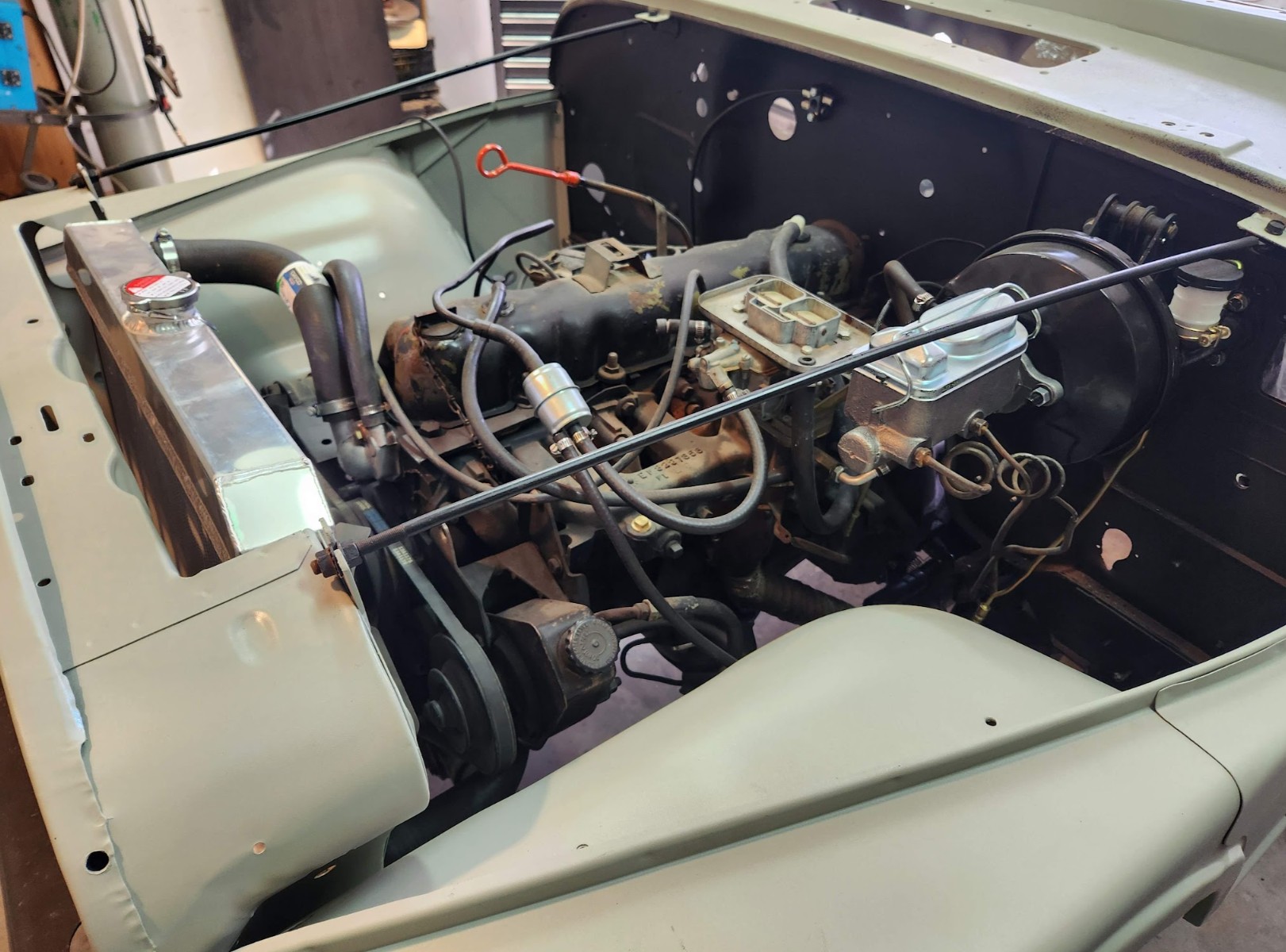 מערכת קירור סגורה. מערכת בלמים סגורה. קלאץ' הידראולי סגור (הצינור המקורי הגיעה באיחור גדול אבל הגיע). מערכת דלק סגורה מחכה לעוד חלק אחד. יש מושבים! הלכתי על בסטופ מאמזון במחיר של בלאק פרידיי בסוף נובמבר.