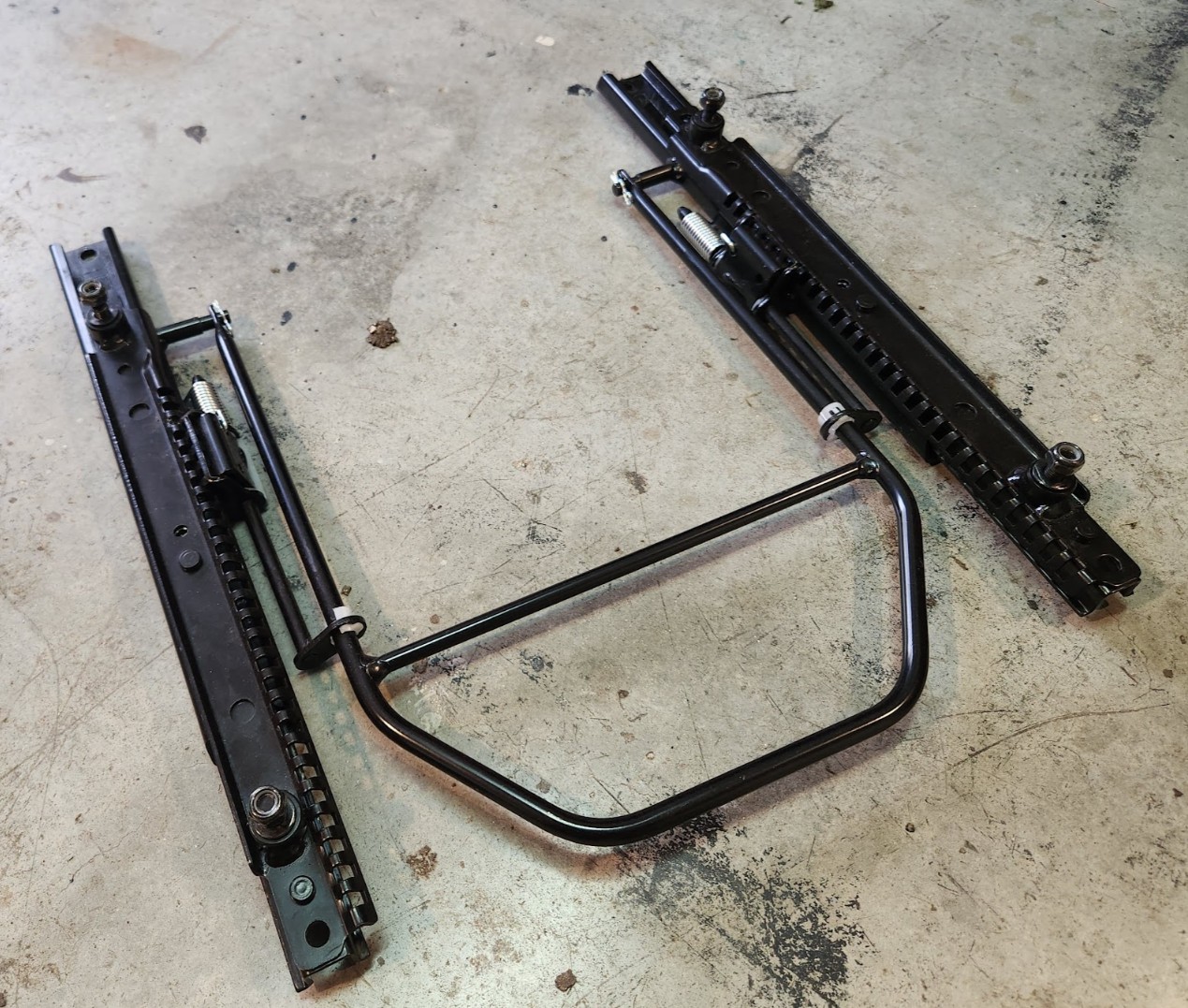 הזמנתי גם מסילות בסטופ, השתמשתי באחת לצד נהג, בצד נוסע המסילה הגביהה את הכסא יותר מדי בשימוש עם התושבת המתקפלת המקורית שהצלחתי להחזיר לתפקוד. חשבתי וחשבתי מה לעשות ואז ארנון סידר לי את הראש, בשביל מה צריך מסילה לצד נוסע בכלל?