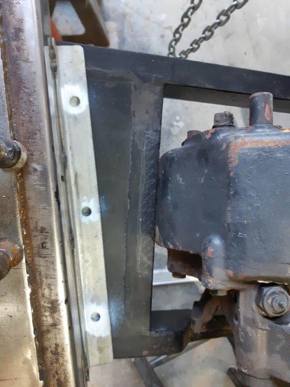 קיבעתי את רכבת הכוח בגובה הזה עם הפלאשנצ'וק. את גשר הגיר שבניתי בתחילת השרשור הזה מיקמתי במיקום המיטבי. במקור הוא תוכנן להכיל את הטרנספר עם קלוקינג (סיבוב מסויים) סימנתי איפה אני רוצה להוריד חומר כדי שלא יגע. על השלדה ריתכתי בפיקים זני זויתנים עם שלושה חורים בכל צד לברגים בקוטר 3/8. מדידות סימונים, קידוחים.
