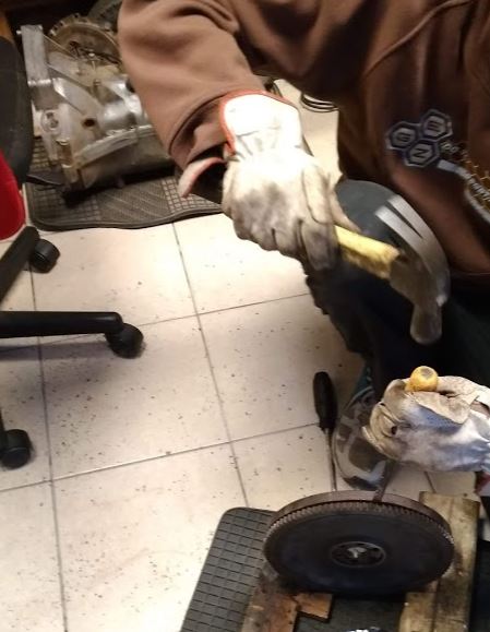 בזמן הבדיקה של הנעילה נשמעה שריקה של מייסב לחץ מהקלאץ. לכן החלפה של המיסב קלאץ ומיסב אחורי ועל הדרך ראיתי שהזר שיניים שחוק בצד אחד בגלגל תנופה לכן הוצאת הזר שיניים. חימום זר שניים וגלגל תנופה במקפיא והופ זה נופל פנימה. אחד היתרונות הבולטים בסמוראי שלי תמיד יש עוד מה לעשות :).