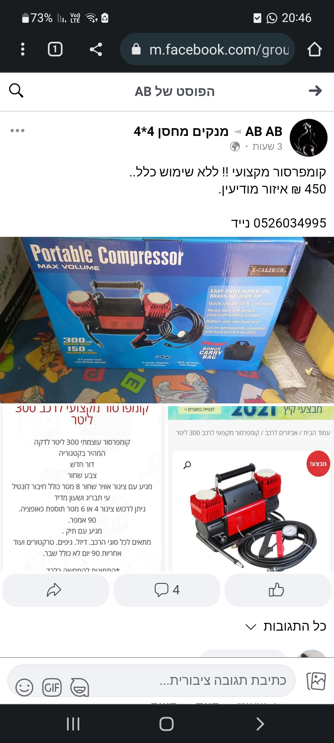 יש לי כזה כבר כמה חודשים, עובד נהדר מעבר לזה שהוא גם ג'אמפ סטארט ניתן לקבוע לו לחץ אוויר והוא מפסיק לבד, מהיר מאוד ונוח עם סוללה חזקה וגם פנס, מגיע בתיק נחמד עם אביזרים, אחד האביזרים הינו שקע מצית שהחזיק לי את המקרר בנסיון כחצי שעה ללא השפעה ממשית על מד הסוללה הפנימית שלו.