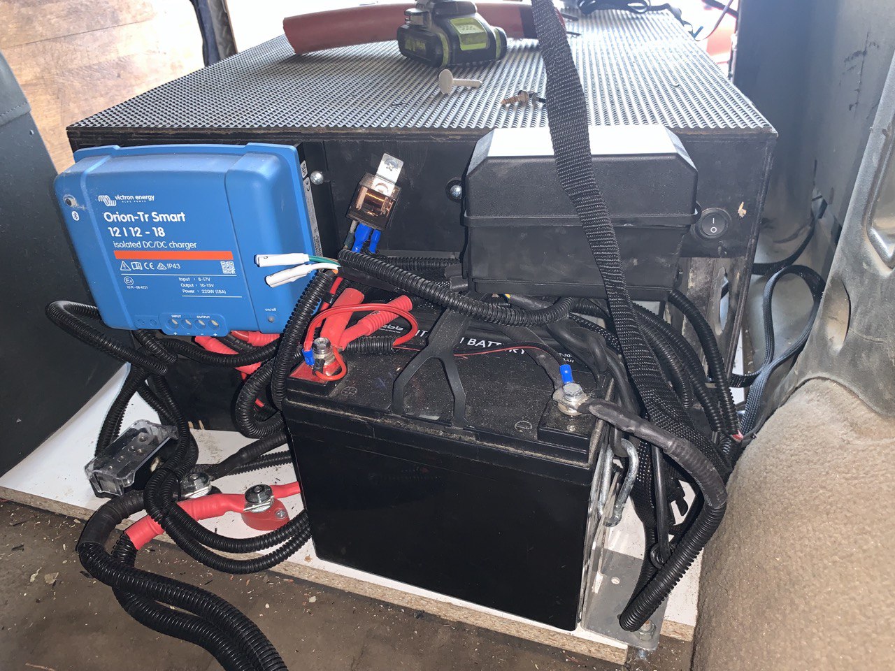 קבענו על פרויקט ראשוני של 5000 שקל – שכולל התקנות חשמל, מערכת מים, התקנת המקרר, וחיבור מערכת המצבר המשני (ליתיום + מחשב טעינה חכם) והעברה של תשתית חשמל מהמצבר הראשי אחורה למצבר המשני.