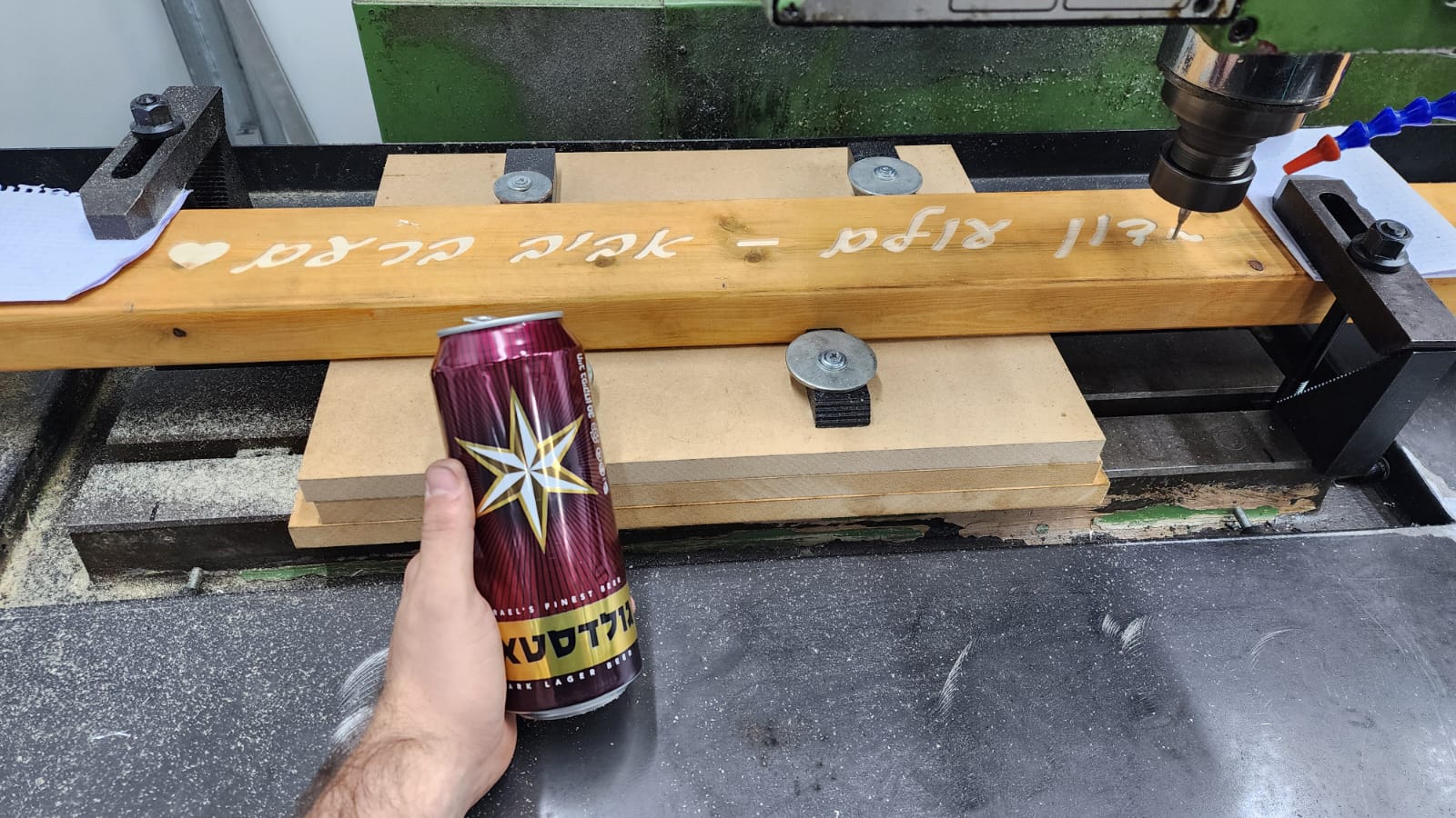 כרסום בעץ עבור ספסל, לזכרו של חברי אביב ברעם ז"ל, שהוצב סמוך לקבר שלו בבית העלמין בשריגים.