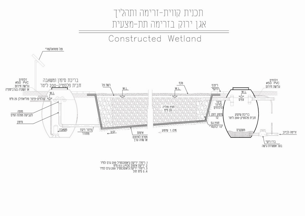 מצ"ב קובץ שהעביר יוני5 (המוגבל ביכולתו לשנות שם קובץ או להקטין תמונה). זו טיוטה של"מדריך שימושי לטיהור והשבת מים אפורים באגן ירוק במגזר הביתי" מאת ארנון גורן מקיבוץ מעברות, הכוללת מפרט מלא ושרטוט לבנייה של מערכת כזאת המתאימה למשפחה בת 5 נפשות.
