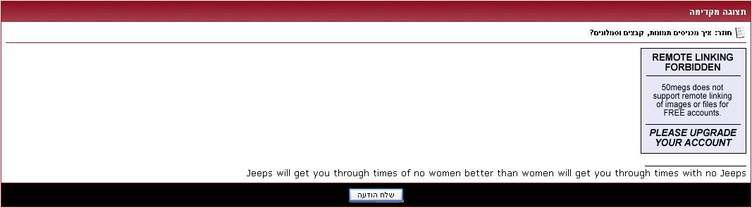 זה אומר שהשרת שעליו אתה מאכסן את התמונות, לא מאשר קישור מאתרים אחרים ואז יש צורך לעבור לשיטה השנייה.