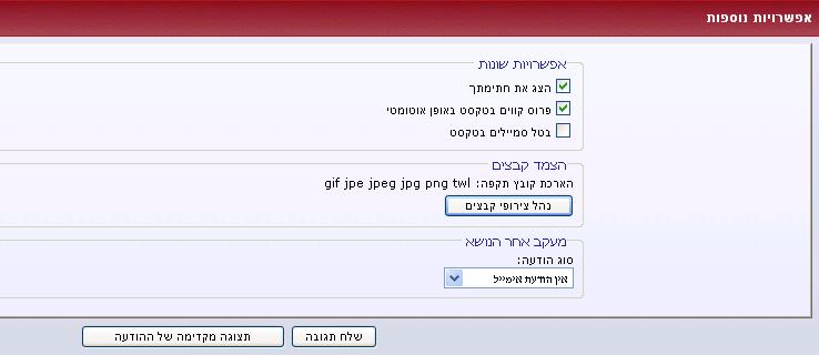 לוח הבקרה למשתמש--->ערוך אפשרויות--->ממשק עריכת הודעה