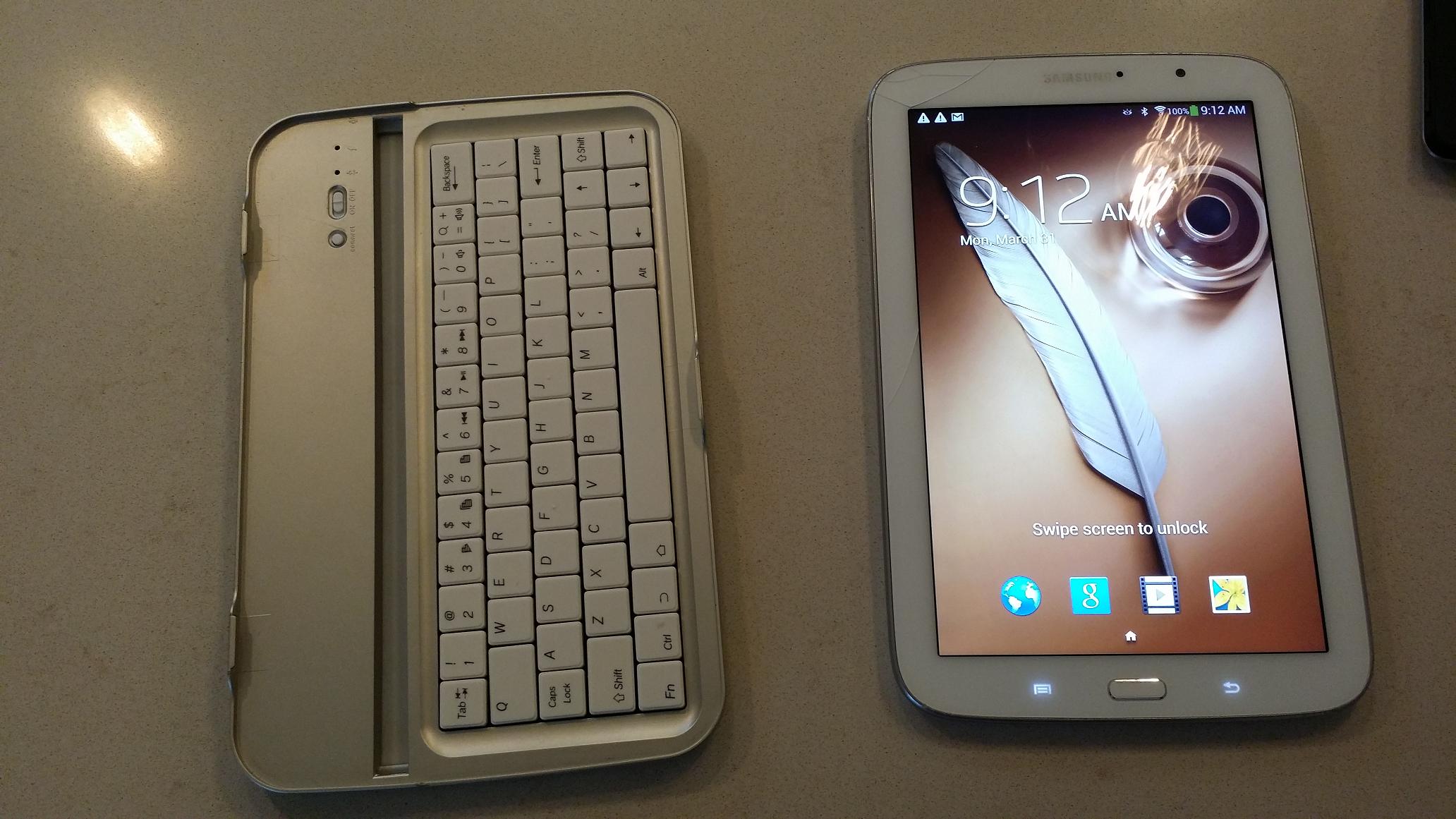 בתמונות הבאות זהו גלאקסי נוט 8,שהוא "8, עם מקלדת בלוטוט', שמשמשת גם ככיסוי קשיח (אלומיניום) וגם כמעמד לטאבלט.