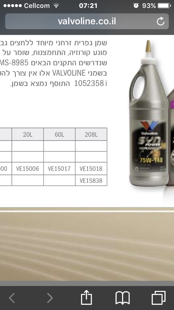 בסרנים צריך שמן 75w140 בלבד, עם תוספת בקבוקון תוסף מופר,