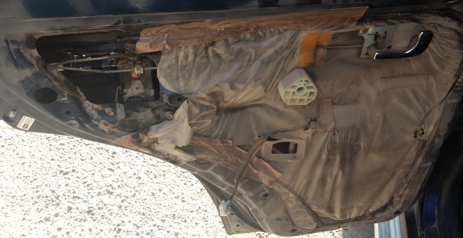 4. ננתק את דיפון הדלת מהדלת עצמה וננתק את מחבר חלון החשמל מהדיפון, נניח את הדיפון בצד בזהירות. הדלת מתנתקת על ידי משיכה של פיני הפלסטיק שמחזיקים אותה ולאחר מכן דחיפה קלה מעלה. זהירות- אלה חלקים בני 15 שנה ולא צריך הרבה בשביל שישברו.