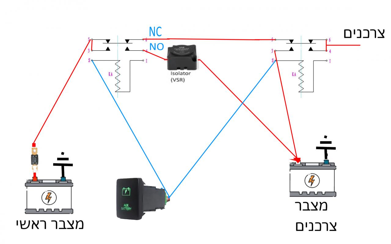 מה שחסר בשרטוט המקורי שלי זה VSR או עוד ממסר למנוע ממצבר הצרכנים לטעון את המצבר הראשי :)