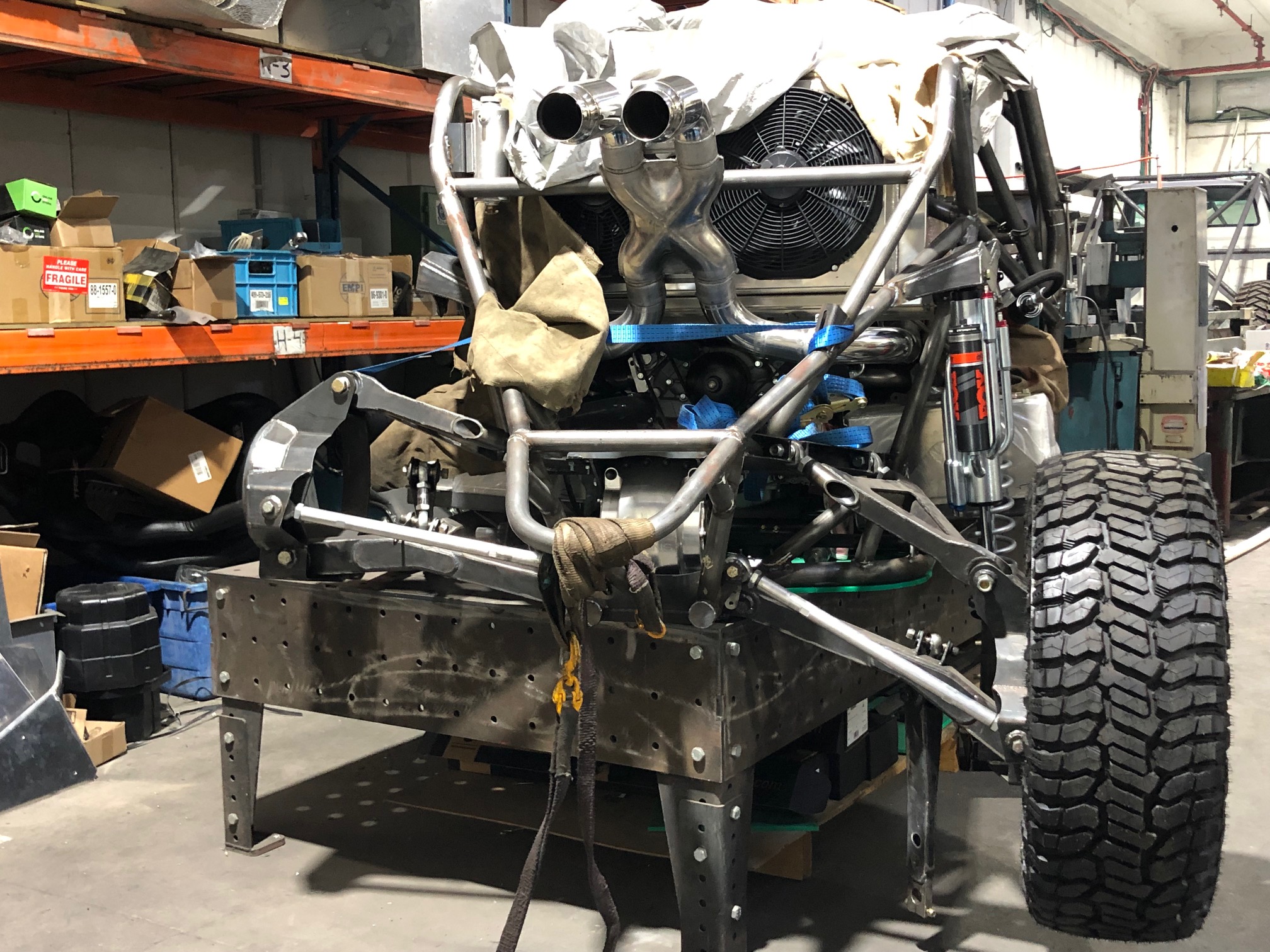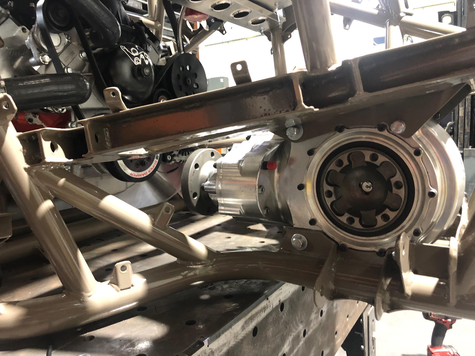 מעללי השבוע הסתכמו בסיום ריתוך השלדה לפני שליחה לצבע. בין לבין כל מיני הכנות לפני הרכבת המכללולים בחזרתה מהתנור. - למשל הרכבת המצמד הכפול למנוע-זהו מצמד כפול, בקוטר 11" שאמור להעביר את המומנטים האלה לארבעת הגלגלים. הכל מייד אין יו אס איי- עובר איזון ,ברגים כמו שצריך, מסבים איכותיים ובכלל כיף להחזיק את הדברים האלה בידיים.