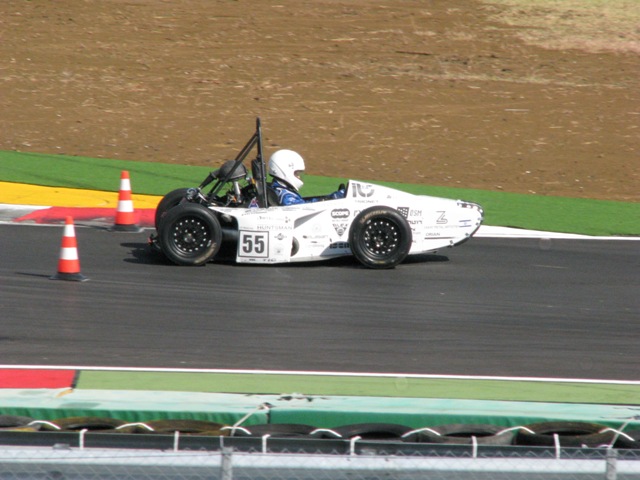 עוד קוקפיט מושקע בטירוף. מצד שמאל ניתן לראות את שאר המכונית. זוהי מכונית מאוניברסיטה אחרת בגראץ. החברה מקבלים מימון מוגזם לגמרי בין היתר גם מרד בול האוסטרית. למכונית יש בקרות על הכל כולל הכל ונוסעת פשוט מעולה. אפשר לראות את המוט המייצב מבצבץ מאחורי הגלגל האחורי ואת הנהגת של הקבוצה, בחורה עם רצח בעיניים שנוהגת בהתאם.