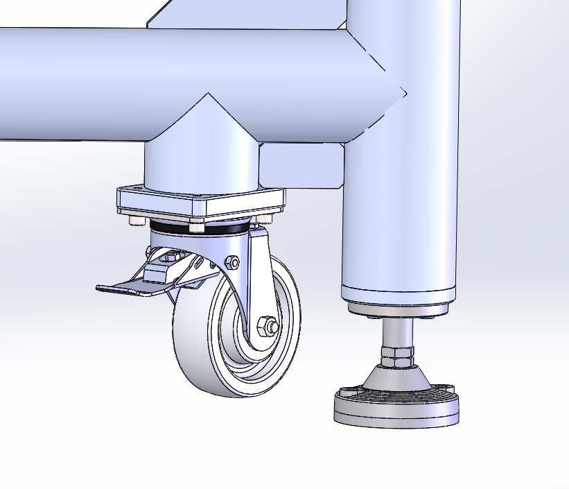 כאשר השולחן במקום העבודה מורידים את הרגליות כך שהמשקל יהיה עליו, בזמן העברה, מבריגים את הרגליות מעלה כך שהמשקל עובר לגלגלים. מצרף תמונה של סקיצה משולחן שעשיתי, שם העומסים היו גדולים מעל כל מה שמוצר סטנדרטי משולב איפשר (2 טון שולחן+ציוד):