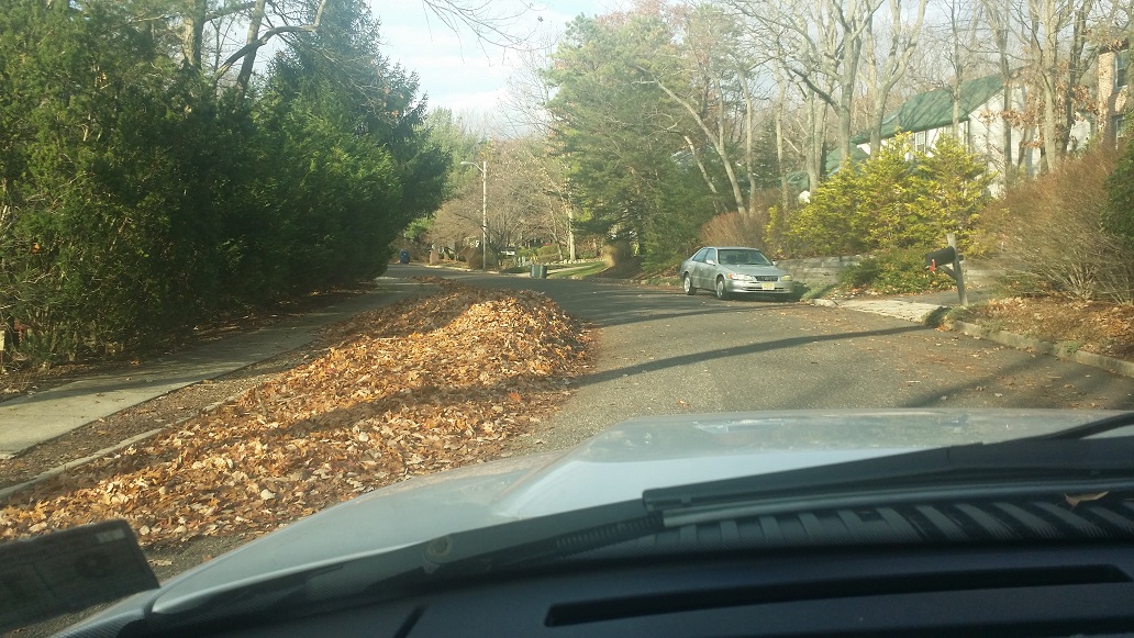 במשך כמה שבועות אוספים את העלים ועורמים אותם לאורך הכביש ומחכים למשאיות האיסוף - משאיות עם שואבי אבק ענקיים ששואבים את העלים דרך צינור בקוטר של כמעט מטר...