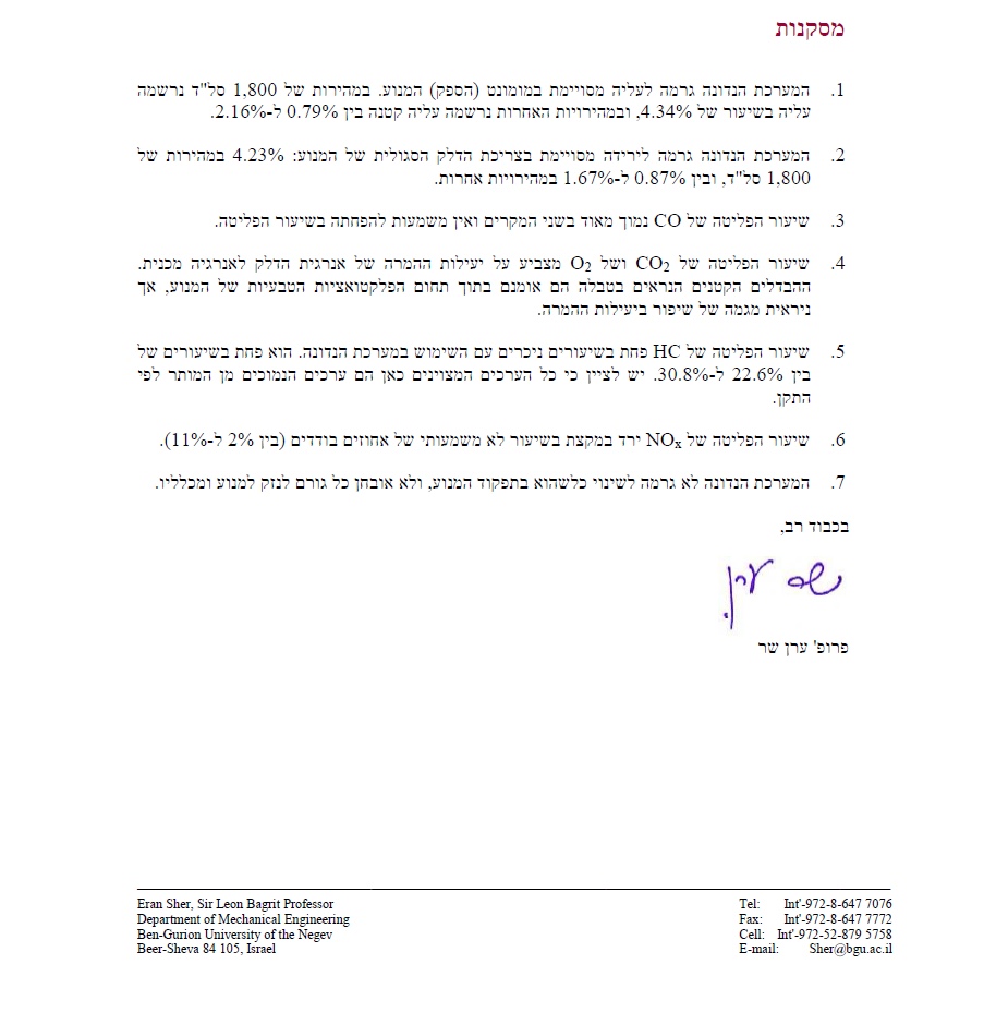 · נבדק במעבדות אוניברסיטת בן גוריון ע"י פרופ' ערן שר נציג ארגון מהנדסי הרכב האמריקאי SAE.