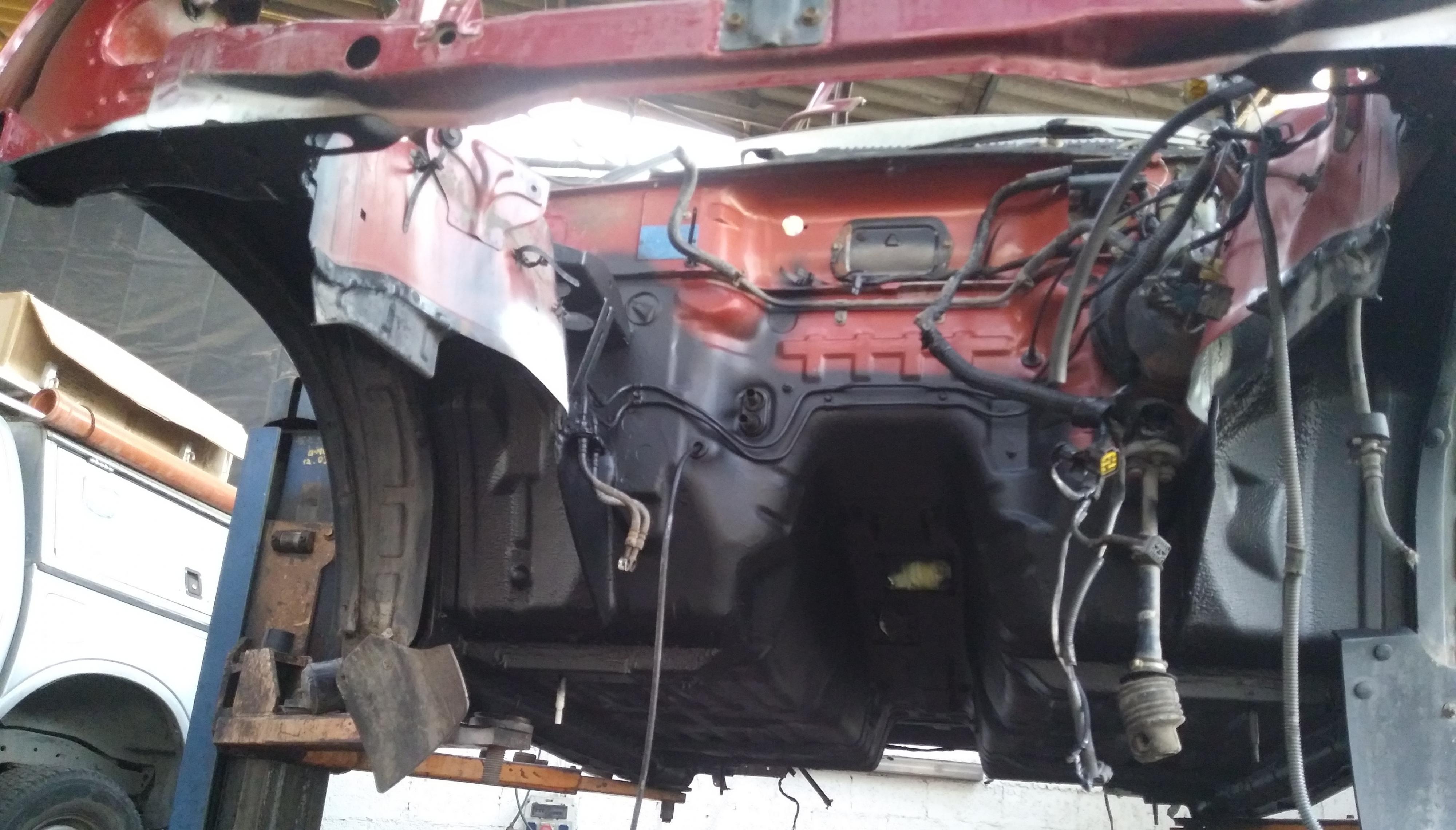 כל האבזור הפנימי נשלף החוצה כהכנה לציפוי רצפת המרכב בדיינאמט: