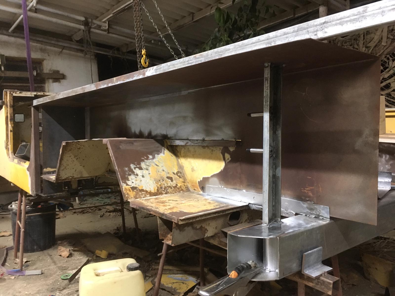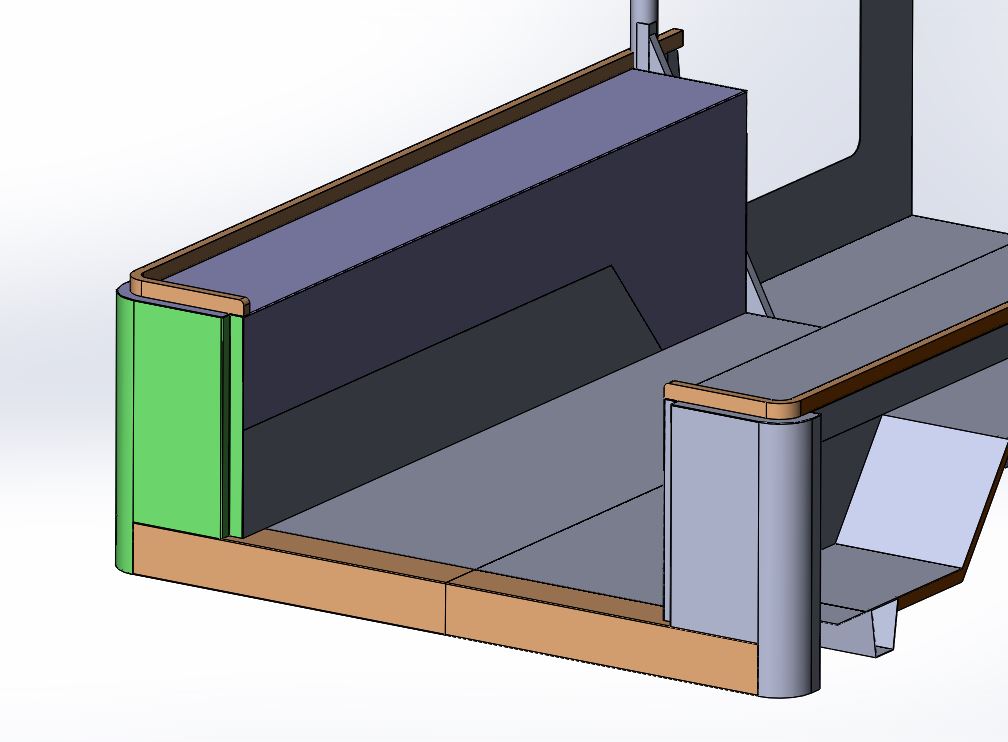 לפי התכנון של הבודי החדש אני סוגר את התא החיצוני בקו המדרגה כך שהטלאי באזור הזה הוא פח מכופף מהרצפה שעולה עד גובה בית הגלגל: