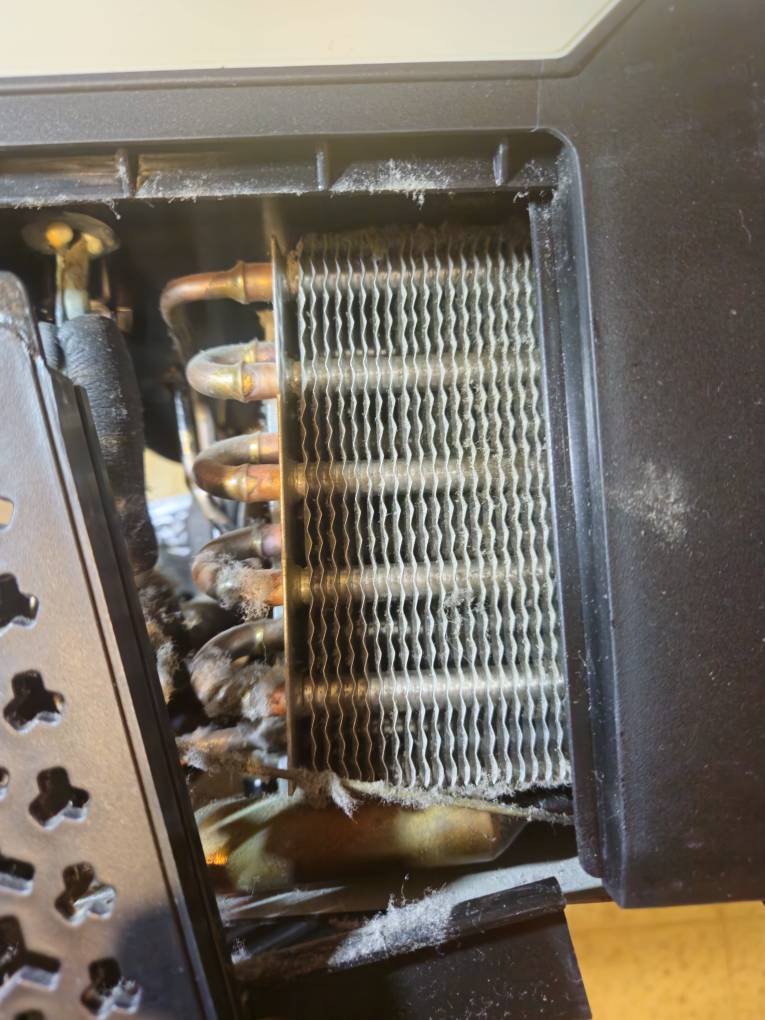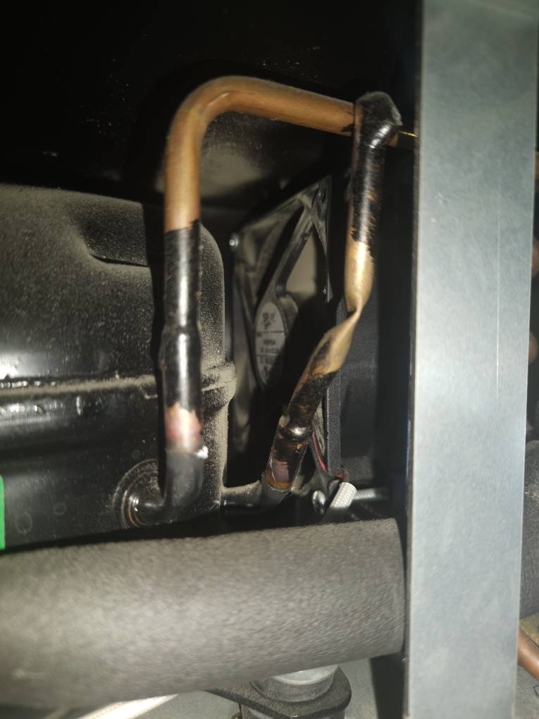 פתחתי את דופן המקרר שבה נמצא המנוע, ניקיתי אבק. שומעים שהכל עובד בסדר, הכל נראה שלם. הפיוז תקין, המאוורר עובד, הכל כמו שהיה כשיצא מהקופסה.