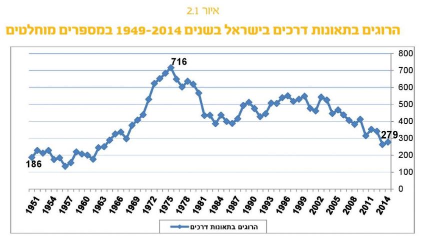 מה שיש זו מגמה ברורה של ירידה במספר ההרוגים בשנה בישראל, משיא של 716 בשנת 1974. מספר ההרוגים השנתי בעשור האחרון הוא הנמוך ביותר, וזאת למרות שרמת המינוע היא הגבוהה ביותר (הכי הרבה אוכלוסיה, מספר מכוניות, קילומטראז' לנפש). לא צריך להיות גאון כדי להבין שהסיבות הן טכנולוגיות נטו - שיפור בכל המובנים, הן של כלי הרכב והן של התשתיות. צריך להיות באמת חמור בשביל להתכחש לעובדות האלו.