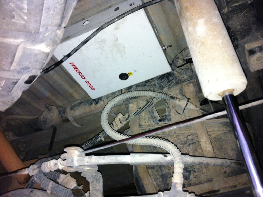 ככה זה נראה מותקן מתחת לרכב, לפני חיבור צינורות המים: