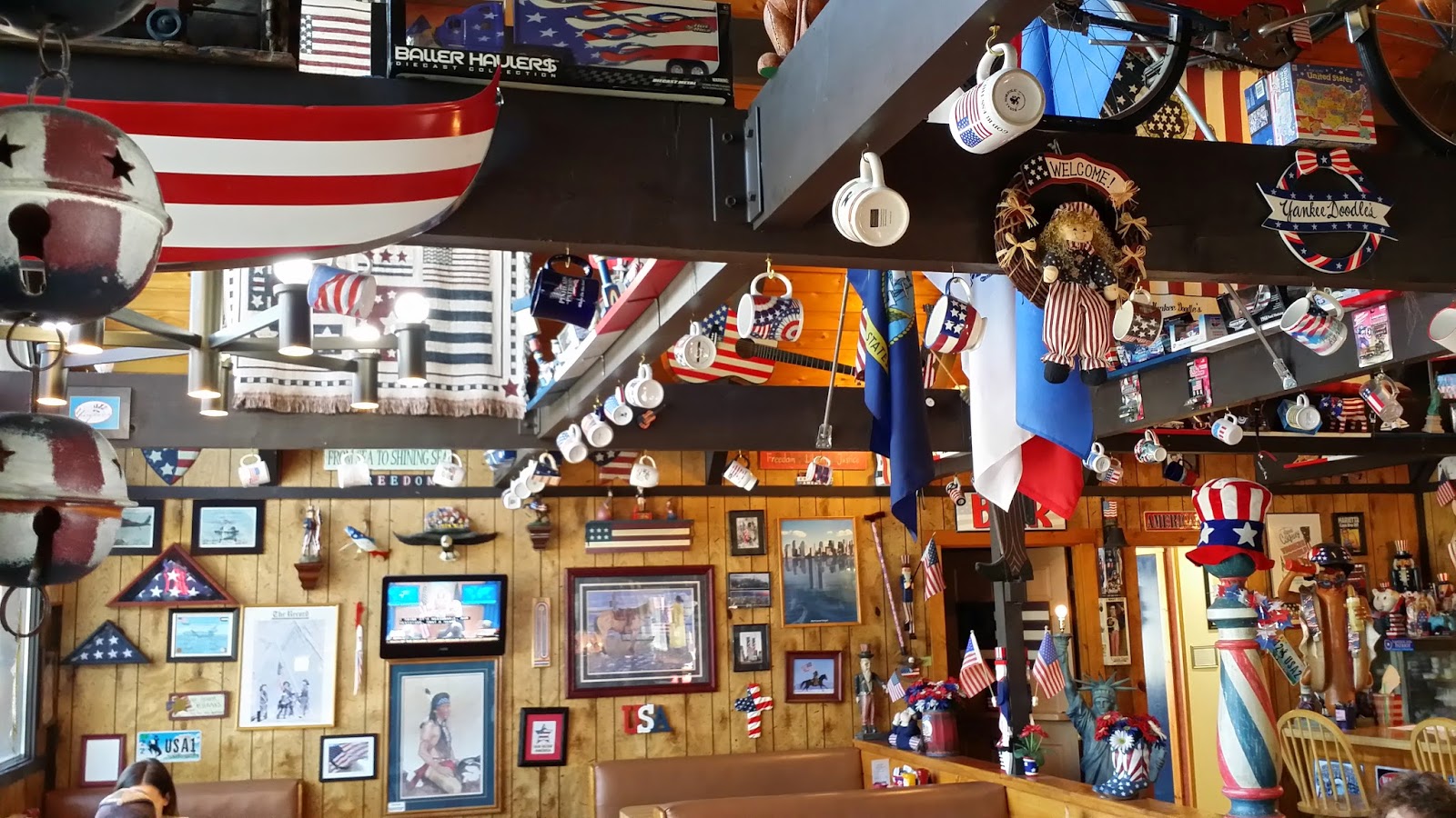 ככל שאנחנו מתקדמים בדרך, מרגישים יותר ויותר את אוירת ה - Wild West. זה מתחיל מכמויות אדירות (ממש, לא להאמין) של חבורות של אופנוענים שנוסעות בדרכים - רובם, אגב, עברו מזמן את גיל 60, אבל זה לא משפיע בכלל על הלבוש, הקעקועים ומצב הרוח המרומם שיש לחבורות האלה, ממשיך במראה של העיירות שאנחנו עוברים בהן - קשתות עשויות מקרניים של איילים, המוני דגלים וסמלים פטריוטים מוקצנים והמון חנויות למכירת נשק בכל מקום וכלה בבארים ומסבאות בכל פינה. בקיצור - השמחה גדולה...