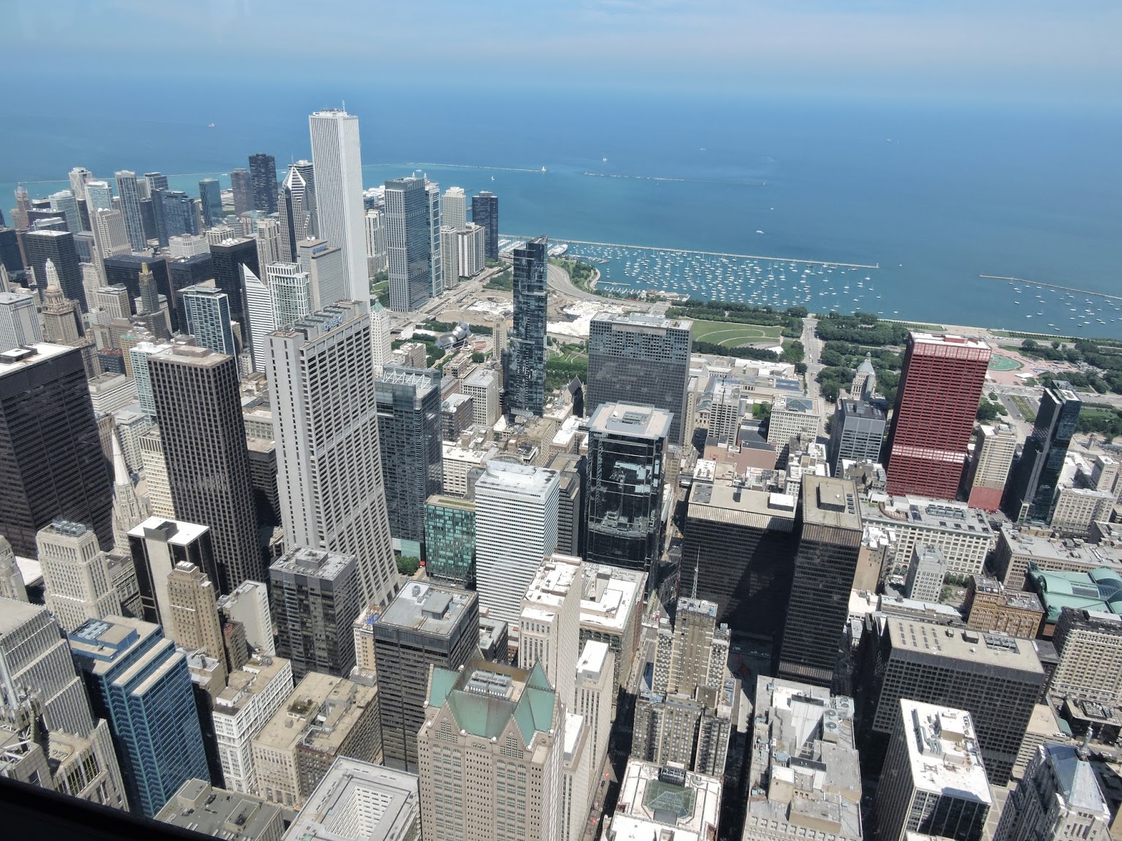 בילינו את היום בעלייה וירידה מהאוטובוס, הסתובבנו קצת ברחובות ועלינו ל - Willis Tower שפעם נקרא בנין סירס, והיה עד אמצע שננות ה - 70 הבנין הגבוה ביותר בעולם. חוץ מהתצפית לכל הכוונים שיש ממנו, יש שם גם מספר מרפסות קטנות מזכוכית, שנותנות תחושה שאתה תלוי באויר בגובה 108 קומות (440 מטר בערך..)