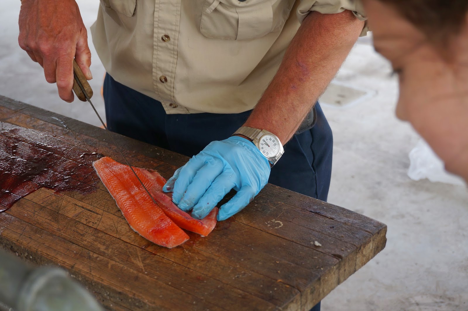 מכיוון שהיה ברור שרק נופים כבר לא מספיקים, ביום השני בפארק החלטנו ללכת על פעילות יותר אקטיבית ושכרנו סירת מנוע לטובת "סיור דיג", שזה אומר שמצטרף אלינו דייג מקצועי, כולל הציוד, שגם משיט את הסירה, גם מסביר קצת על הנוף, עוגן במקום שיש דגים, עוזר לנו לתפעל את ציוד הדיג (איך לזרוק את הקרסים, מתי ואיך למשוך וכו) והשוס הגדול מכל - מנקה ומפלט את הדגים בתום הארוע ואורז הכל בשקית עם קרח. האמת - שווה כל גרוש.