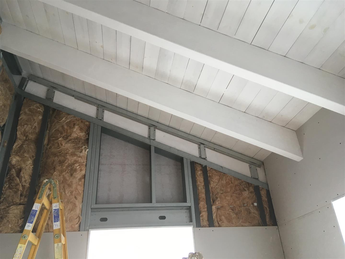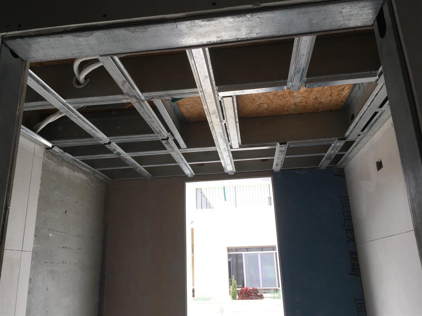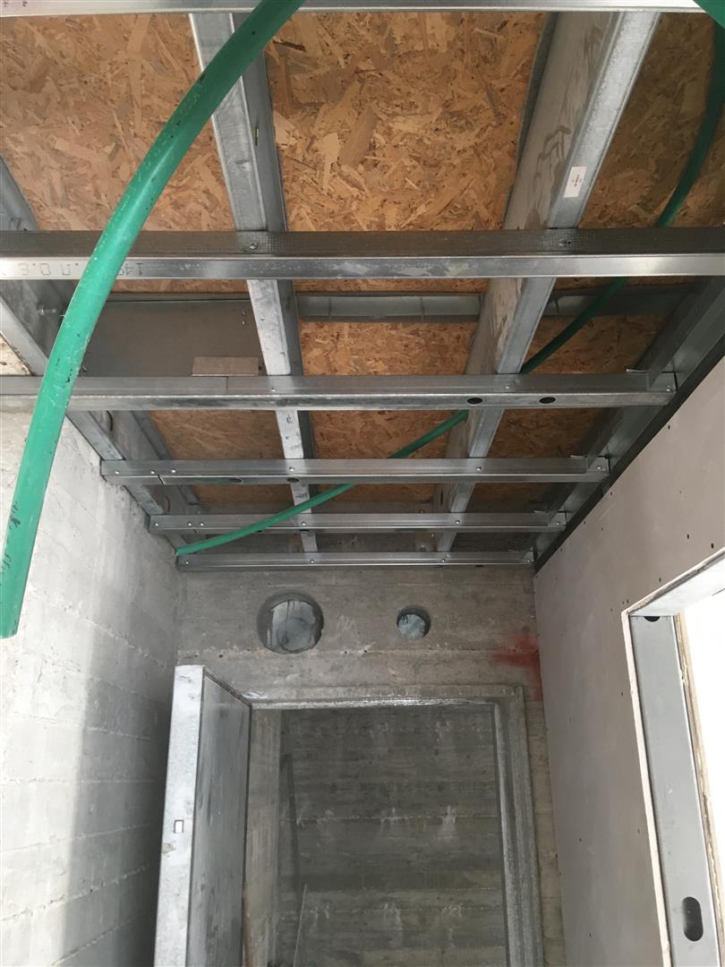 אחרי שתפרתי את כל החיבורים של הקירות פלדה אל קורות העץ, עברתי לעשות הכנות לקונסטרוקציה עבור תקרות הגבס שיש לי בחדרים הרטובים (מקלחות) ובכל האזור שמתחת לגלריה