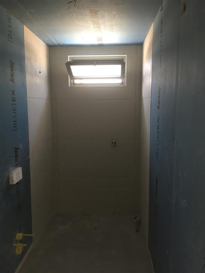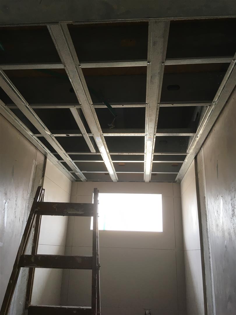 (למי ששם לב, ישנה עצירה בפרופילים של הגבס לטובת "שתילה" של פרופיל U שיחזיק את זכוכית המקלחון באופן סמוי)