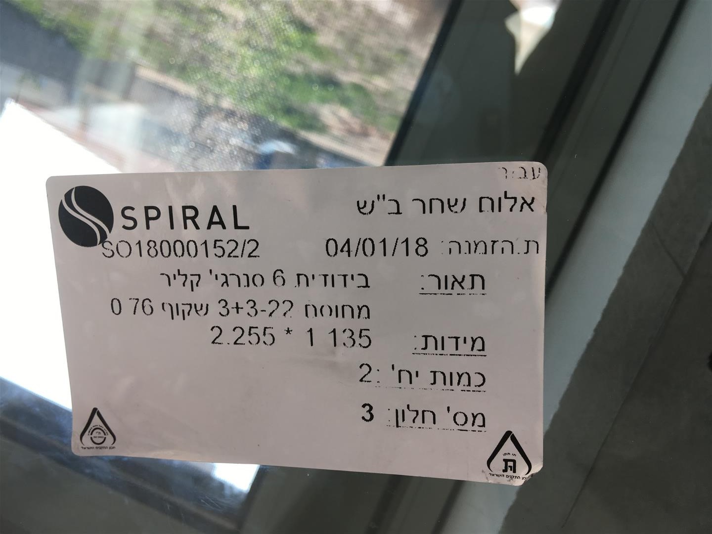 3. זכוכית רבודה (שתי זכוכיות מודבקות אחת לשנייה עם פילם PVB ביניהן, במקרה שלי עובי הפילם שביקשתי הוא 0.76 מ"מ לטובת בידוד אקוסטי טוב יותר)