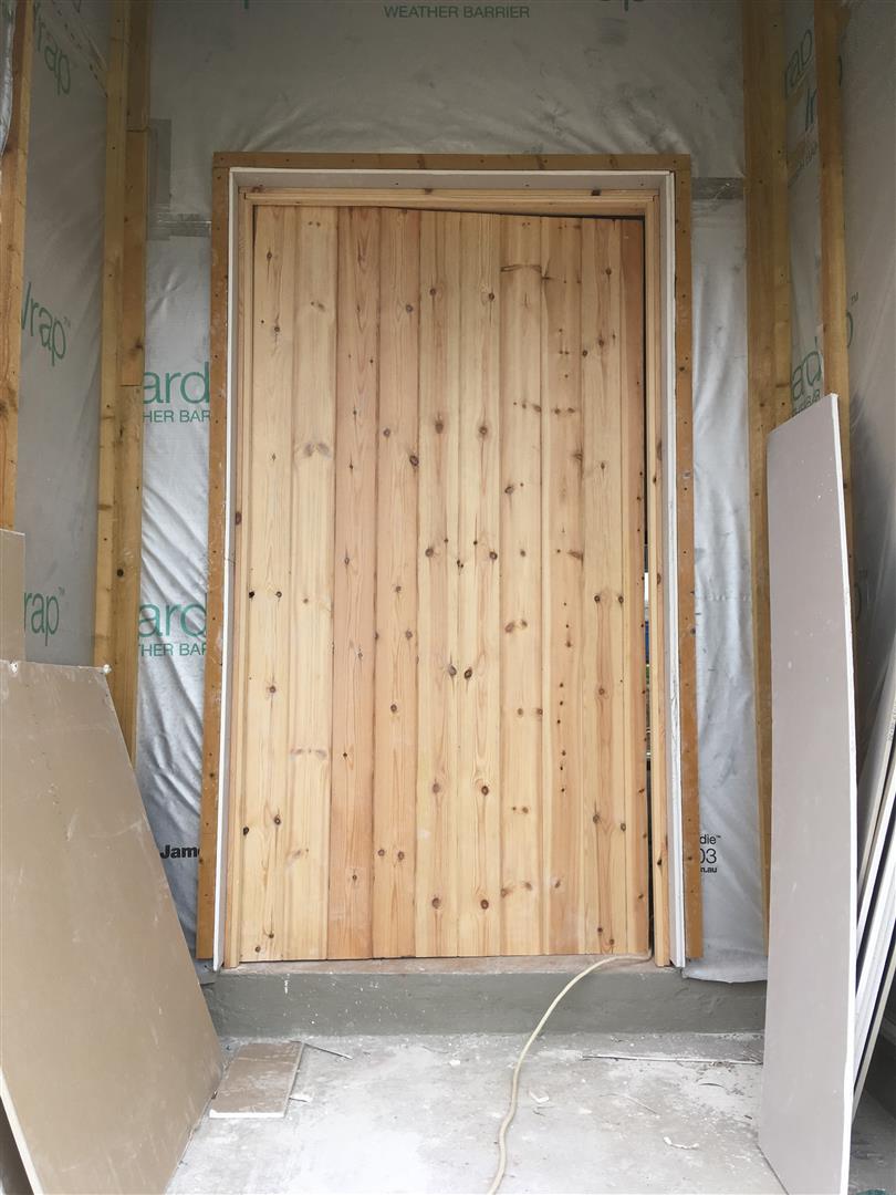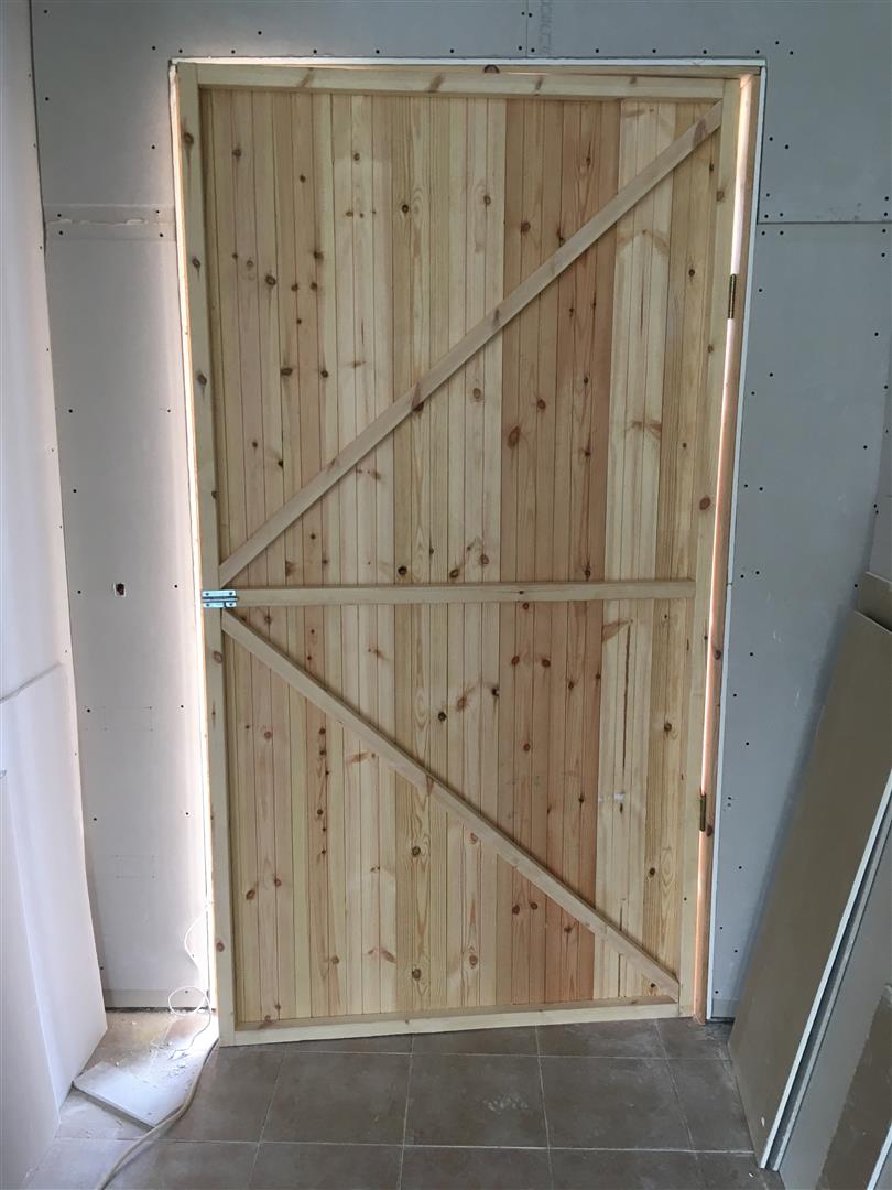 ואם כבר יש חלונות, אז בניתי גם דלת ראשית זמנית כדי שאפשר יהיה לסגור את הבית.