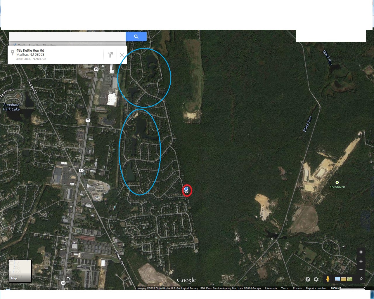 בכחול, האגמים הפרטיים של השכונה.