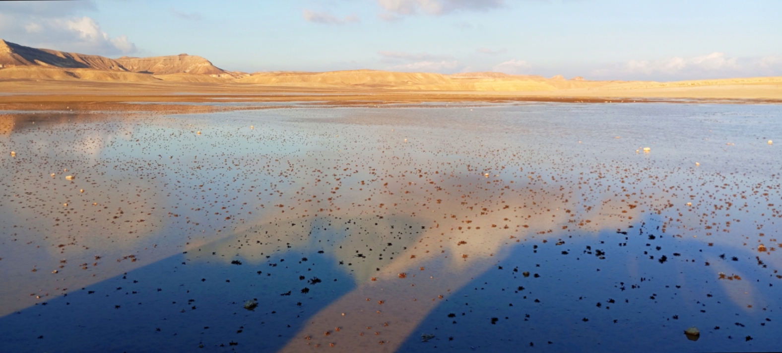 בהחלט מראות נדירים.. בקעת קטורה הפכה לאגם קטורה. ומים בכל מקום
