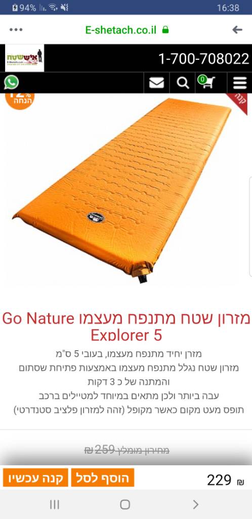 ניסיתי בזמנו בחנות של אישטח (כשעוד היתה כזו) את המתנפח הנ"ל והוא הפתיע אותי לטובה. כנראה התמורה הטובה ביותר שתמצא ביחס לנפח האחסון. לא קניתי כאלו כי יש לי מתקפלים טובים (של סבא בני) ומקום קבוע עבורם במזוודת הגג, אז זו לא חוות דעת משימוש בשטח אלא רק מבדיקה בחנות.