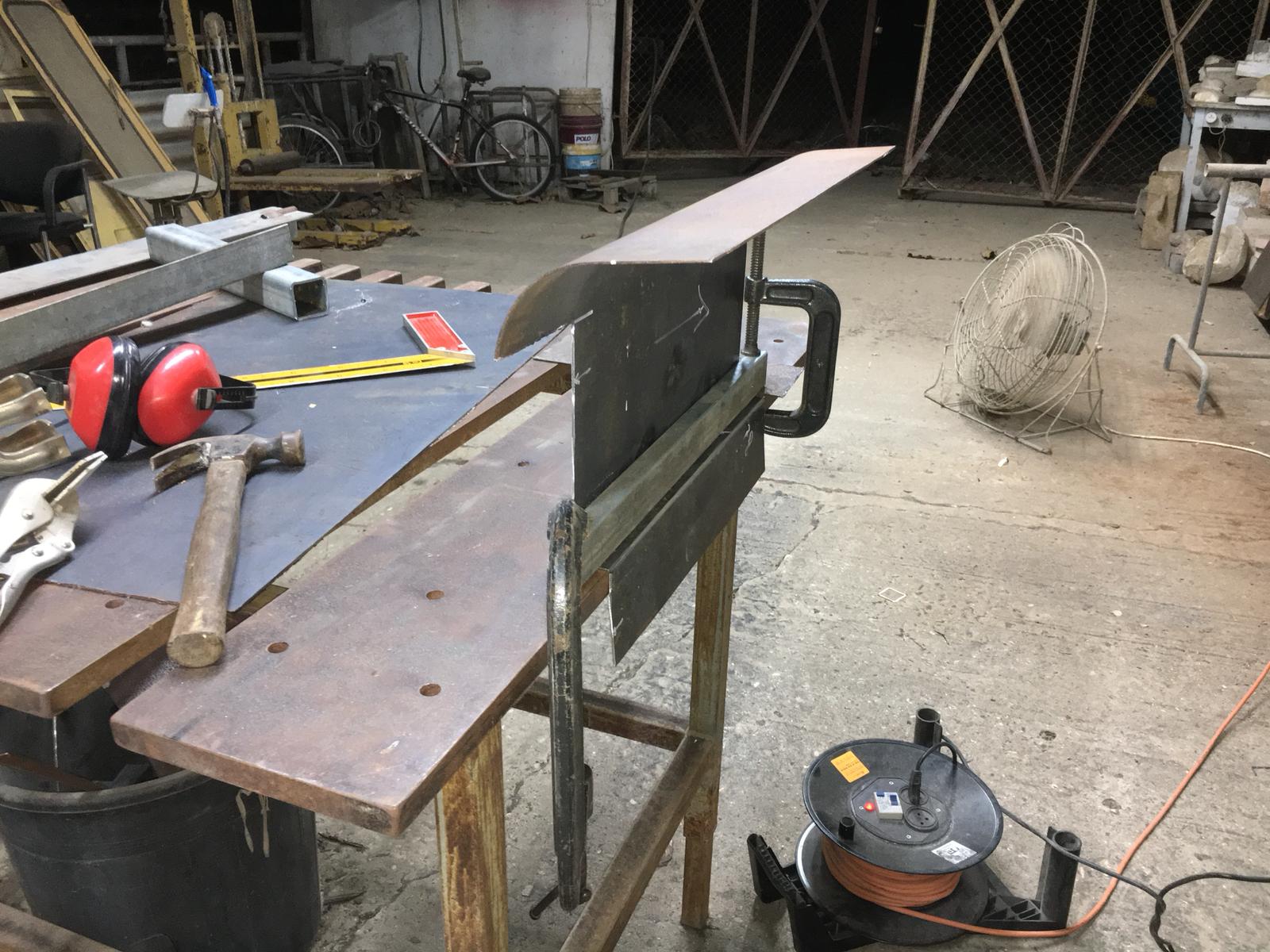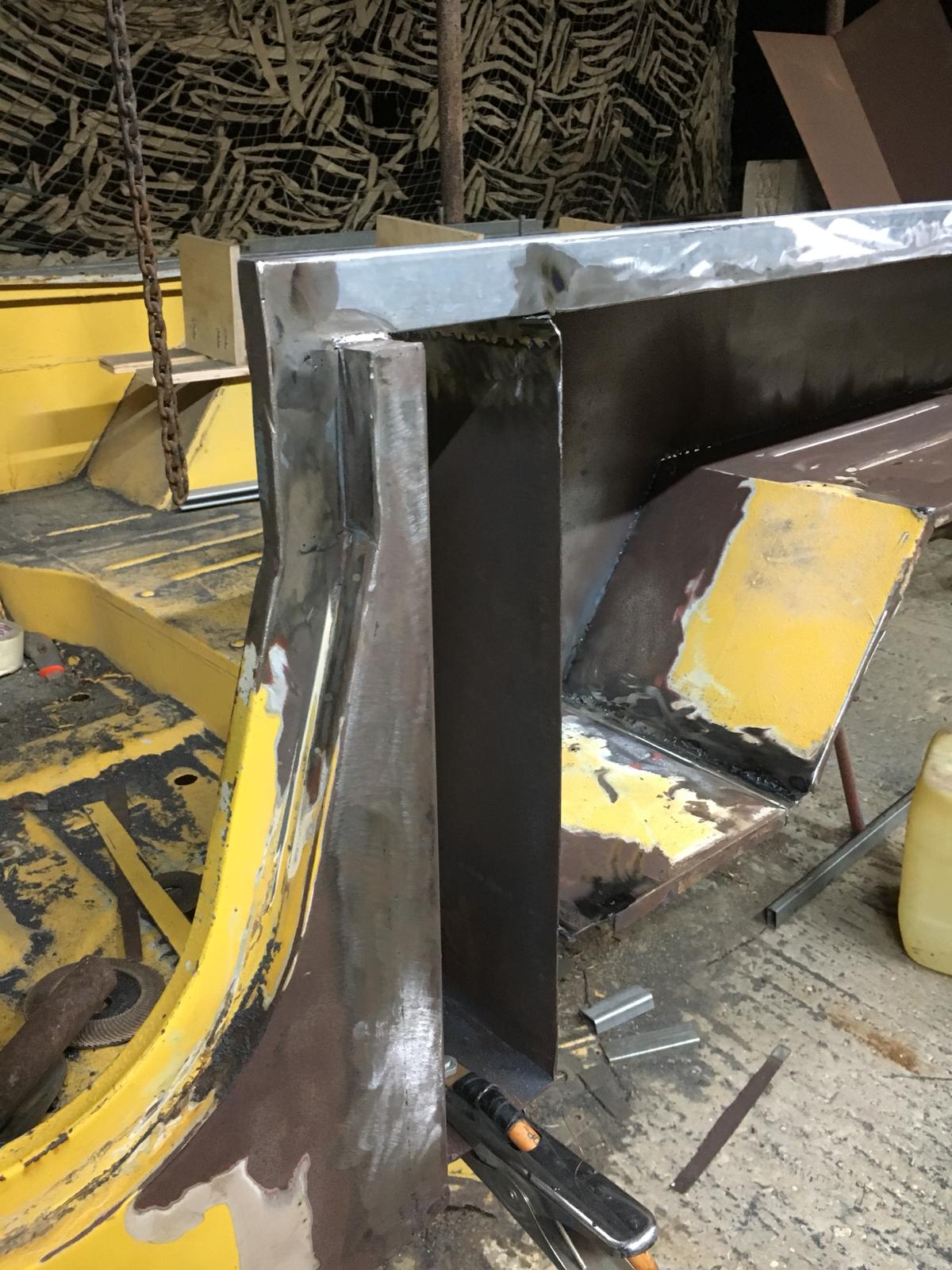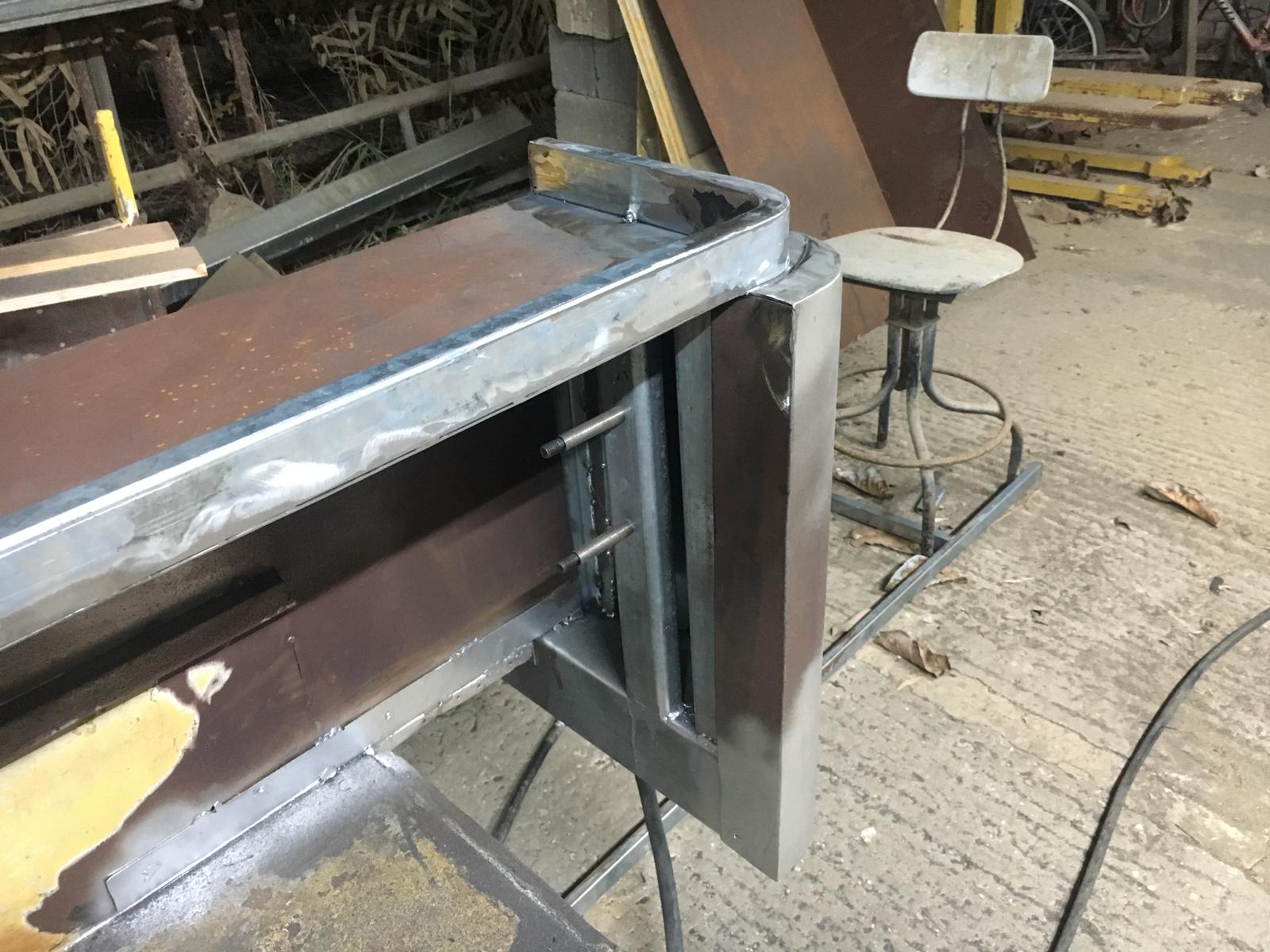 סגירה של המישור העליון בין 2 הכיפופים, הצילום נעשה לאחר שקטע אחד כבר רותך והושחז:
