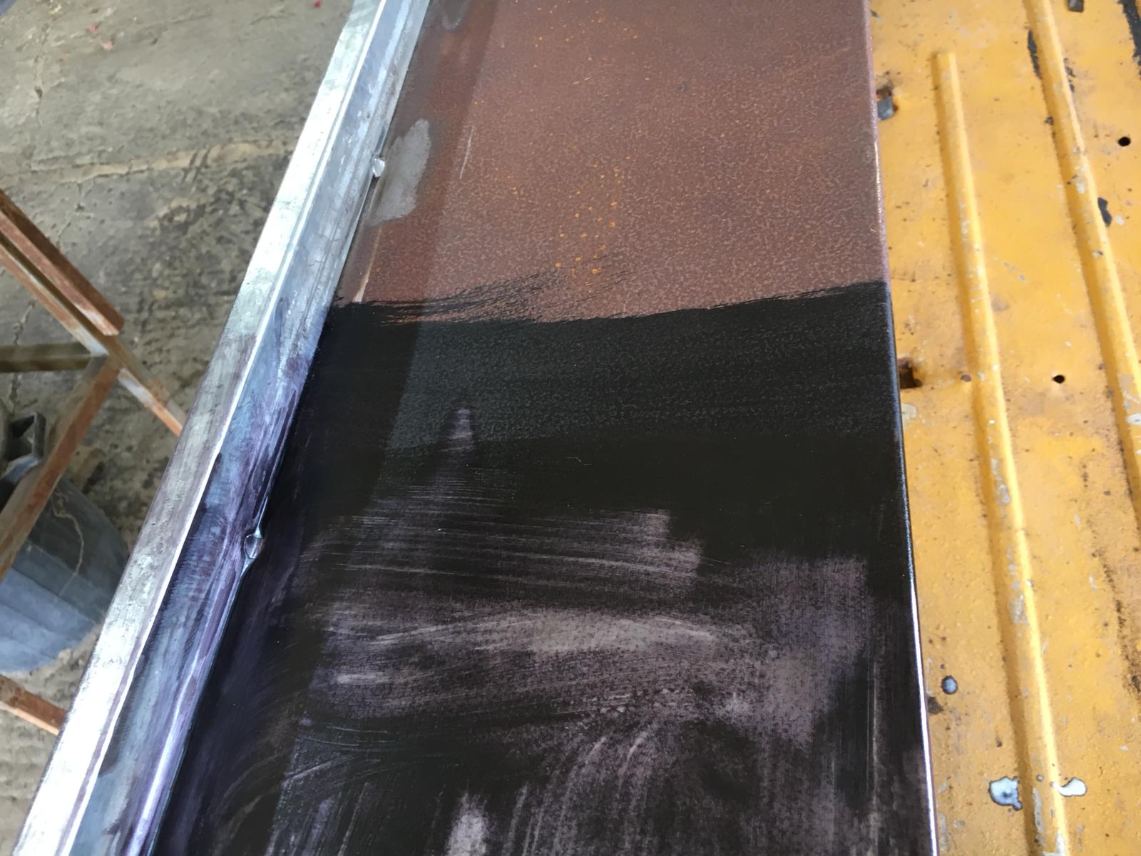 המקטע העליון זה הכהה זה פח שלא ניקיתי. פייר מלבד פני השטח המחוספסים אני לא בטוח אם יש משמעות לניקוי. (כנראה שאנקה בכל זאת)
