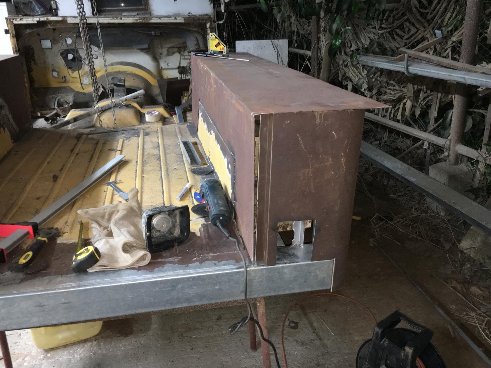 פירקתי את הדופן על ידי השחזה של הפח לאורך החיבור עם הרצפה כך שהשחזתי את ריתוכי הנקודה המקוריים וקילפתי את הדופן.