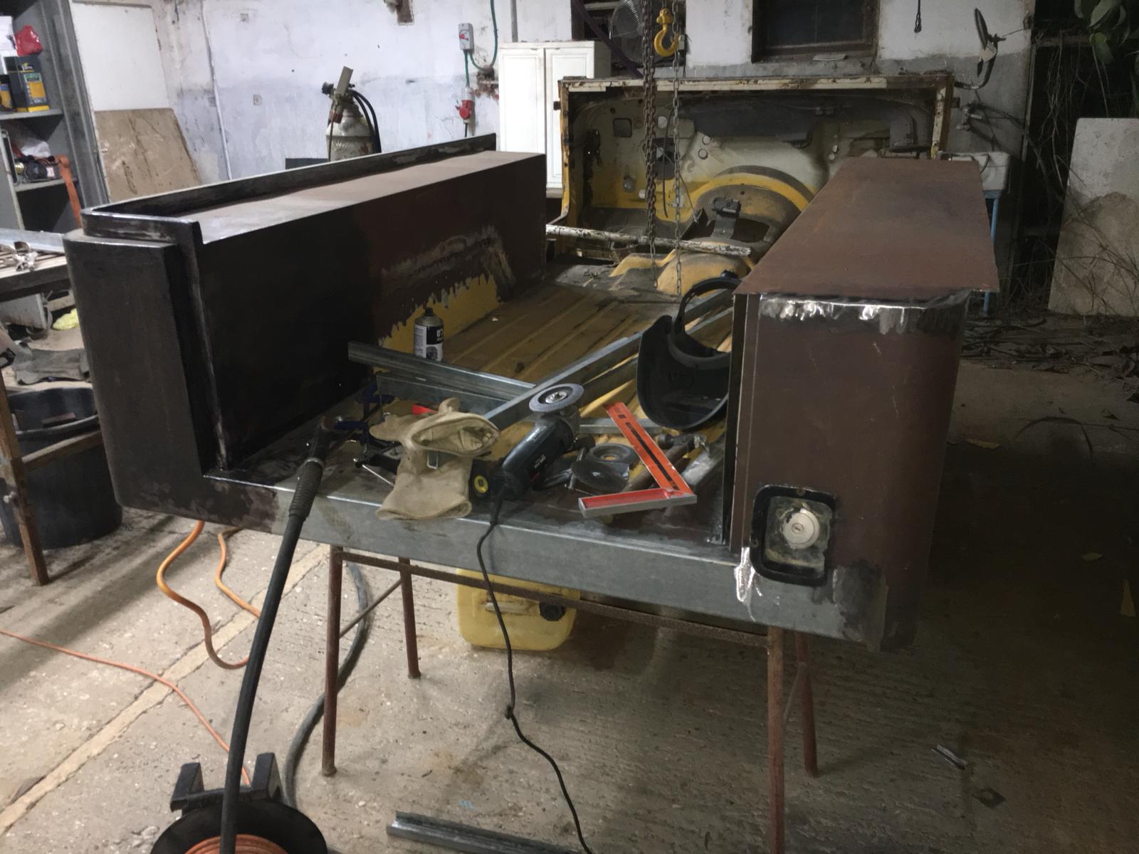 אני עדיין עסוק בסגירה וסיום של אזור הדופן השמאלית על כל השינוים של הבודי שעשיתי. אמנם ההרכבה הראשונית הלכה מהר יחסית אבל לתפור את כל הריתוכים, להשחיז, לתקן פאקים שמתרחשים על הדרך, להשחיז, לסגור את כל הפינות והרווחים הקטנים בין חיבורי הפחים, לרתך נקודות נקודות לתפר מלא, להשחיז.... זה מלא עבודה :p.