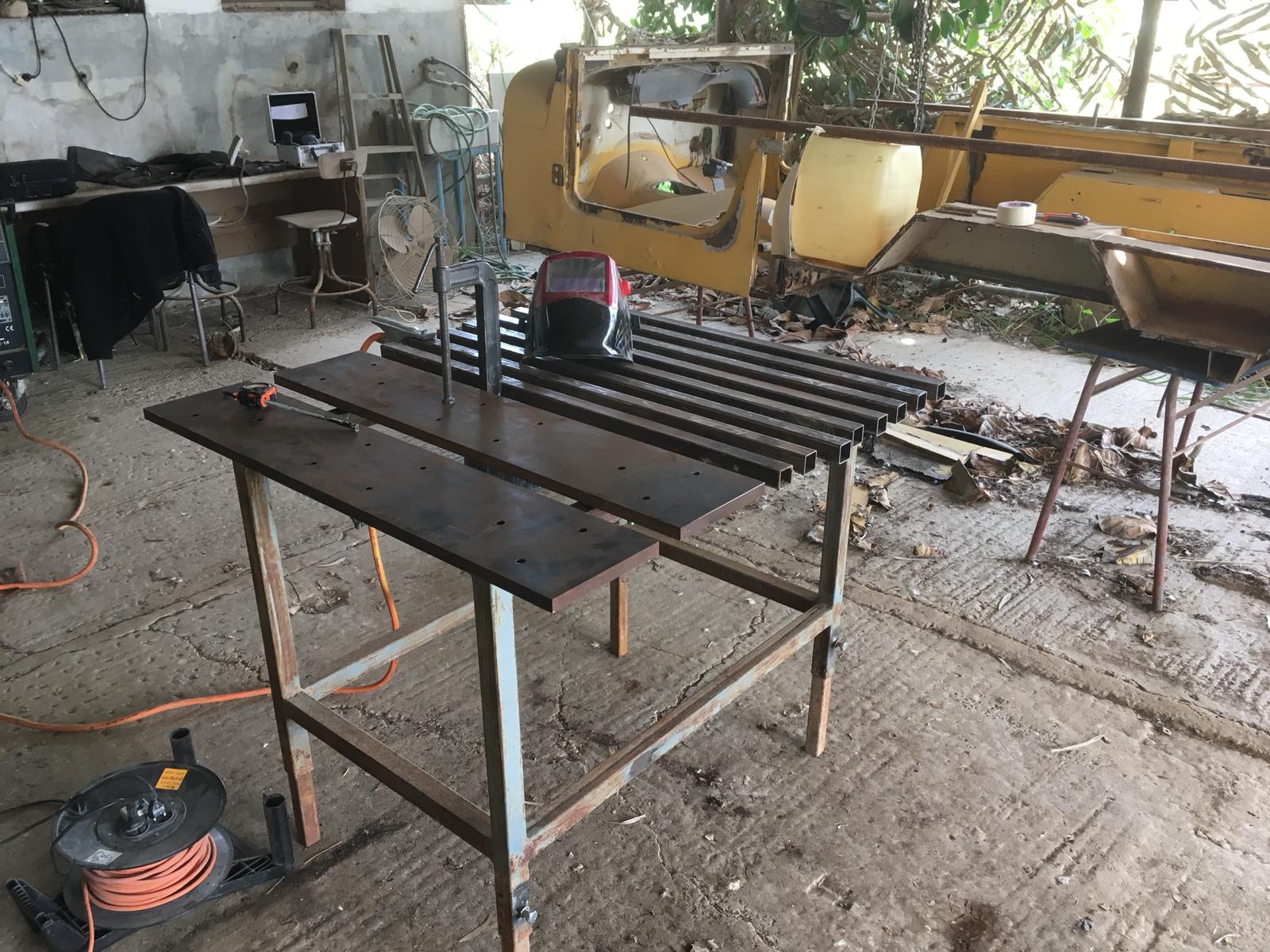 אז כולם בנו שולחנות ועכשיו הגיע הזמן שאני מתחיל לחשוב על זה. שולחן עבודה יש, מסגרות עשיתי עד היום על מסגרת ברזל לא הכי ישרה.. חושב על בניית שולחן. נייד.