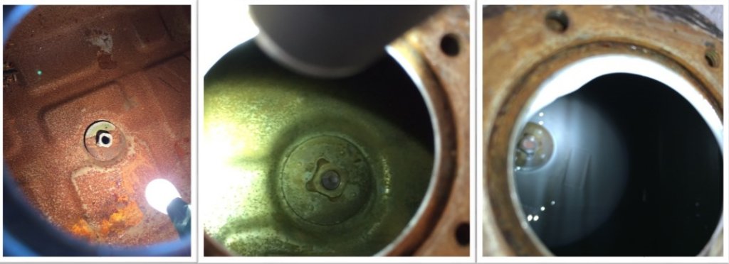 אז כמו שהזכרתי, מיכל הדלק עבר טיפול יסודי שכלל ניקוי ואיטום של פנים המיכל וצביעה חיצונית. משמאל לימין: מצב התחלתי, אחרי ניקוי, אחרי איטום. ניתן לקרוא כאן בפירוט על התהליך של ניקוי מיכל הדלק.