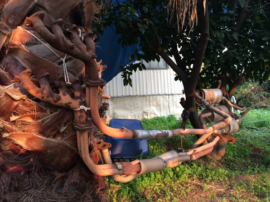 עשיתי כמה שינויים, תיקונים וחיזוקים לצנרת האגזוז. הריתוכים והחלודות נוקו בהתזת חול וגם היא נצבעה בספריי הייעודי למרות שרובה הייתה מגולוונת.