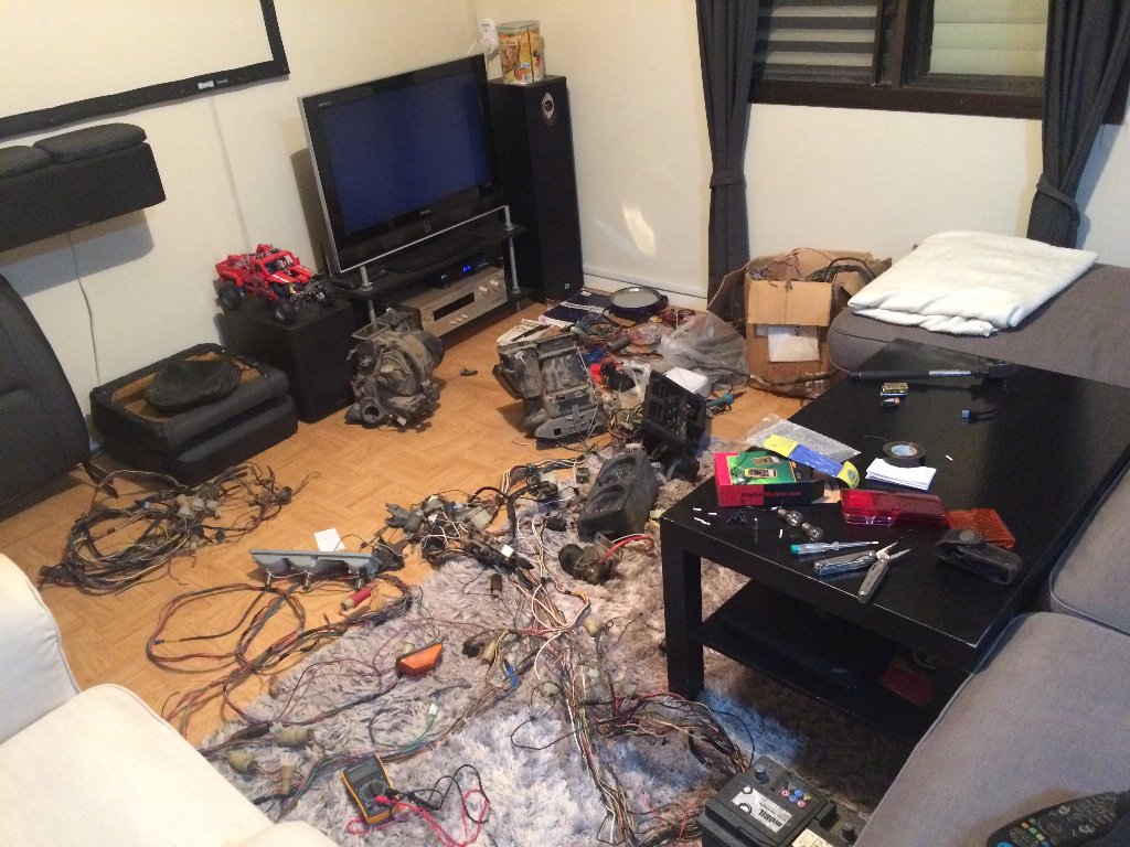 התחלתי לעבוד על צמת החשמל. היה שבוע קר במיוחד אז עשיתי קצת בלאגן בסלון. כל החוטים הופרדו, אלתורי החשמל למינהם נוקו מהצמה וכל חיבור זכה להלחמה וחיזוק.