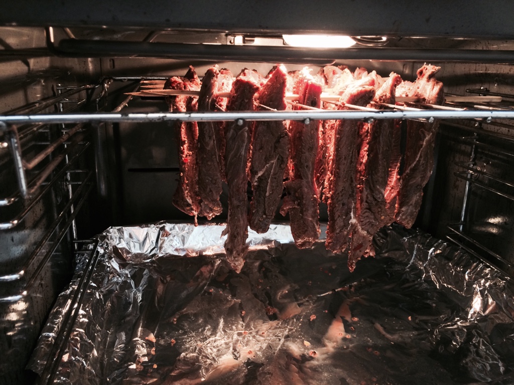 70 מעלות עם טורבו ודלת מעט פתוחה שהלחות תצא מהתנור למשך יום שלם עד שהנתחים קשים.