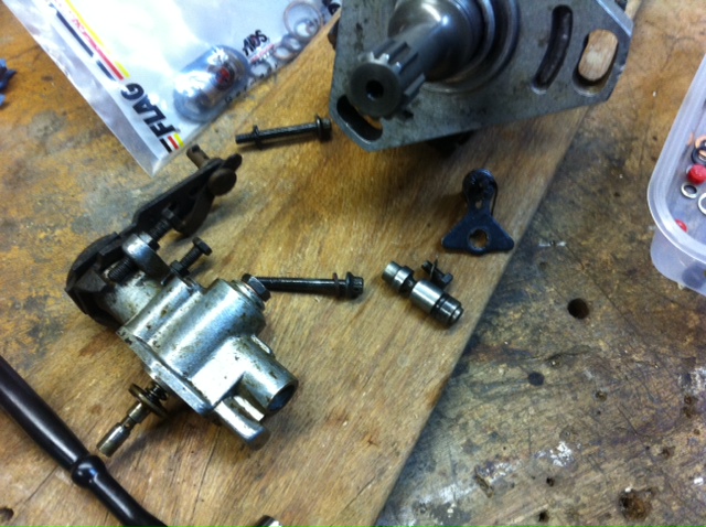 מה שמעניין הוא ששני הצירים - של המצערת ושל המדומם - מוחזקים למקומם עם האורינגים שאוטמים אותם. כלומר אפשר להחליף אורינגים בלי לפרק בכלל את הגובנור מהמשאבה ובלי לפתוח אף בורג... אנגלים מוזרים...