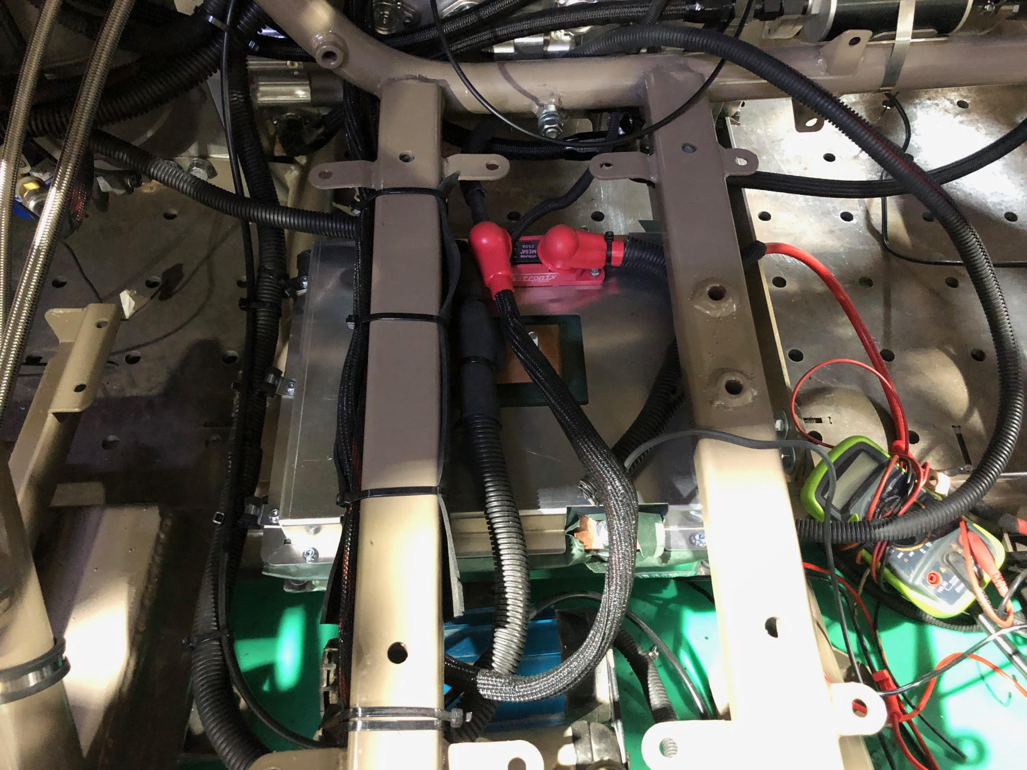 בניית מערכת החשמל לקראת הסוף, אין זמן לעשות הכול ברצף אלא שעות ספורות כל שבוע. אני רוצה להאמין שלקראת סוף השבוע המנוע יניע לראשונה. מאחר והמנוע עמד דומם במשך השנתיים האחרונות -לאחר מילוי השמן החלטתי להריץ אותו לחצי דקה מידי פעם לפני הנעה עם "בעירה פנימית" ,פרקתי את המצתים מהמנוע בכדי להוריד קומפרסיה/מאמץ מהמתנע ומבלי לחבר את מחשב המנוע נתתי הנעות ארוכות בכדי לייצר לחץ שמן ולפזר אותו טוב טוב בכל המנוע, עבד יופי. לאחר מכן החלטתי לחבר חזרה את המצתים ולראות איך מצבר הלייפפו4 סוחב מנוע כזה בהנעות ארוכות- הייתי מופתע מאוד . מצבר של שמונה רביעיות הריץ את המנוע הזה במהירות מרשימה מאוד ומבלי ליפול הרבה במתח. חוץ מהמתנע, שום דבר לא התחמם. אני מבסוט בינתיים מהסידור.